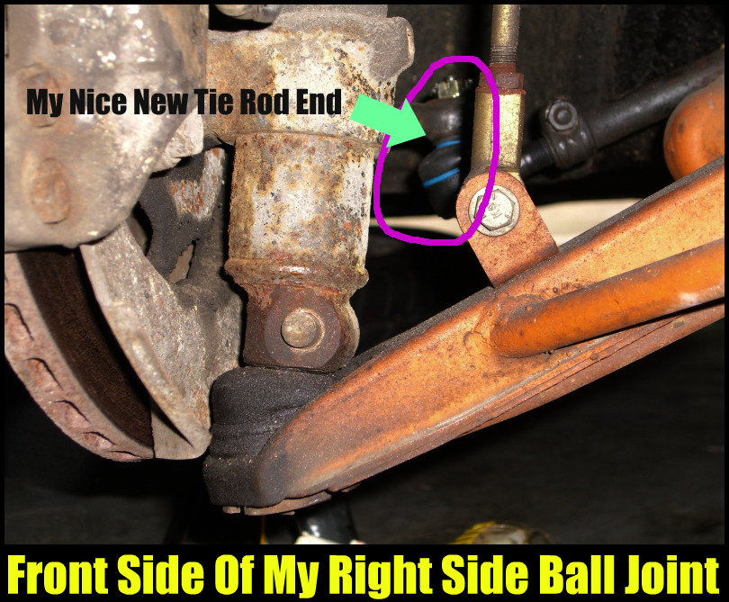 Once I had her "airborne"...changing out the tie rod ends, I could see that when grabbing the right wheel (the ball joint where the boot is not torn), by the sides, and turning the wheel, the end of the strut was moving at the bottom end...almost seems as if the ball joint is fractured. The one with the torn boot is very tight. So, looks like I'm changing them out for more than just the boot. With that ball joint tool (anybody wanna lend me one?) is this usually a job that can be done by hand? I have an electric impact wrench, but not much torque there. |