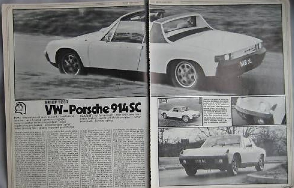 If you want more info on the 914SC, check out the auctions on ebay.co.uk Sort under "Porsche 914SC" There is a road test article which should have good details. Thanx Jeff! (IMG:style_emoticons/default/smile.gif) .... your 914 stash is amazing, as usual! That article is reprinted in this 914 book of articles out currently, along with a bunch of others on the UK/CW 914SC & the RHD Crawford conversions. It's got a bunch of great articles from the US, Canada, etc, too, from about `69 to 80's. It's available online from many booksellers, etc. ![]() |