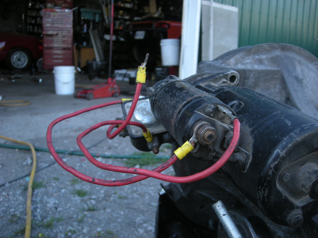 With wire, conectors and a fender mount ford solinoid under $20 The center wire is where I connect the factory wire. Thanks for the pics. I keep thinking "solenoid=doorbell" so I thought the solenoid was integral with the starter motor, the little cylindrical area next to the big cylinder on the solenoid. Like, you can't take the solenoid off the housing. Is the solenoid the box that your wires are attached to? And which Ford part number is that? Or are they all nearly the same? Paul |