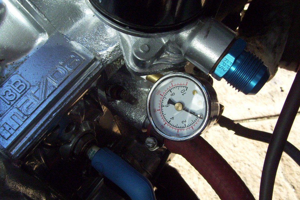 Some of the little stuff... Turbo coolant lines. I need to fab a -4AN for the Oil supply and a -10AN for the drain. I worked on the fuel lines a little. Got the hard lines routed to the drivers side. Still need the final connection to the rail... I added a 150psi guage to my oil sender bung. These little engines run 85-120psi on the oil...
