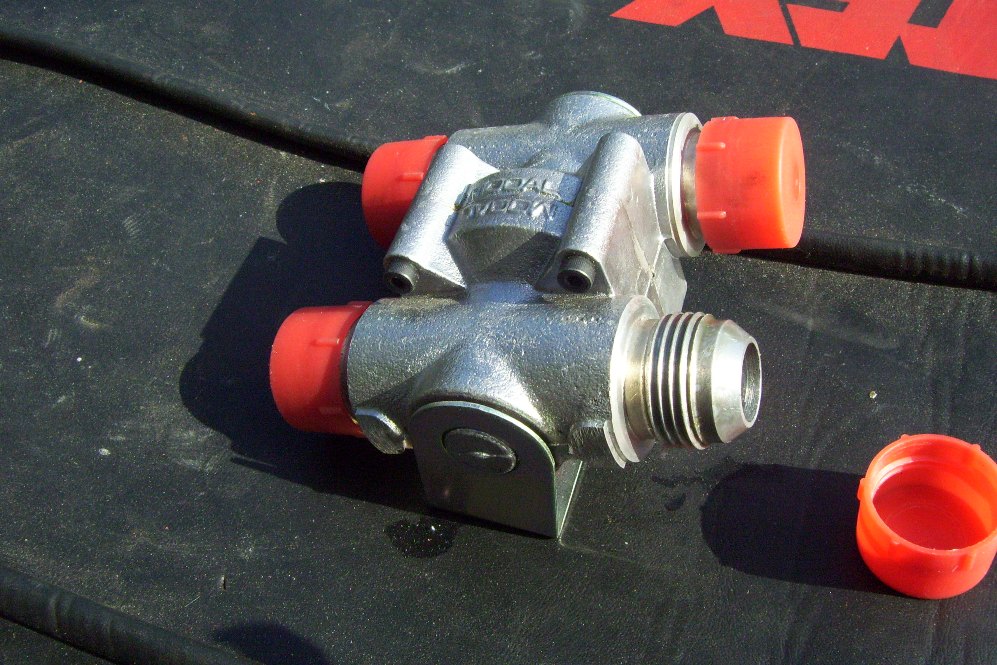 Got some more parts in today. My Setrab Cooler showed up. It's a littly dirty but it don't leak and it will clean up. I also got a great deal on an NOS Mocal thermostat. All these are -12 AN. I guess I willl go with SS Braided lines. This Setrab is huge! 25"x18". almost as big as my radiator 31"x19". I was goint to go smaller but my V8 with this radiator was steady around 165 degrees. This Rotary runs hotter than a V8 so the big rad and cooler should help to keep temps well within normal ranges...