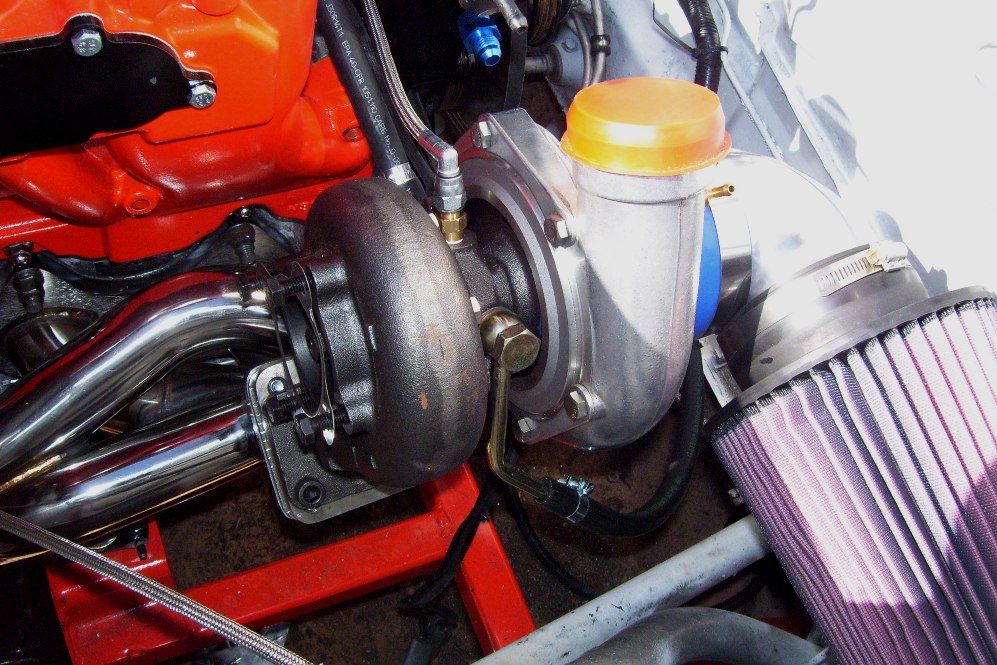 Although the 4" exhaust looks kewl and will sound deep, you may run into an issue with engine temp unless the turbo you are using provides lots of back pressure. This is a problem with the newer diesel pick up guys, they go to 5" on their daily drivers and find that the engine actually runs on the cold side unless they are constantly draggin' around a 13,000 lb trailer. I'm not sure about the effect on this gas engine but a simple restrictor inside the pipe should fix any issues if it is a problem. Does anyone have any cfm numbers on this engine? |