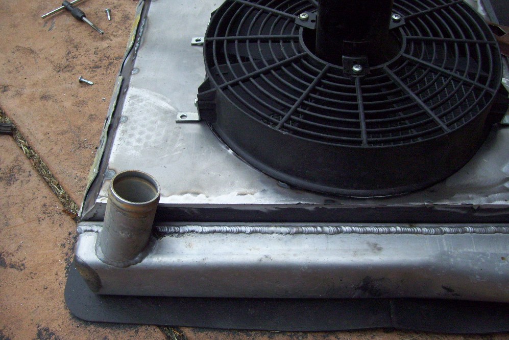 If anyone has looked at my radiator you would have noticed the PO made a wooden shroud for the dual fans. It was time to tackle this project. In order to fit my large oil cooler and close the hood, I needed to lower and lay the Rad back a little. the wooden shroud was elevating the Rad a little. Additionally the PO used spray foam to seal the bottom of the Radiator to the trunk. I started with some metal work in the trunk. The front area was hammered flat. The PO curled it up and filled the gap with foam. That lowered the system a little but the shroud was hanging it up still. I welded up a 1/8" steel frame and clad it with 20ga sheet. The bottom was set up with a 45 angle. This will be flat on the trunk bottom when installed. It should put the Radiator right where I need it. I was almost finished when my welder gun broke. The switch in the handle wont work. Now I need to find a new one since it does not look rebuildable.