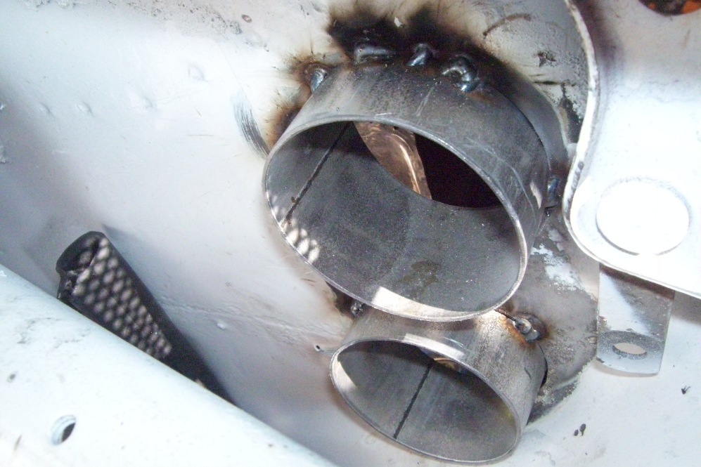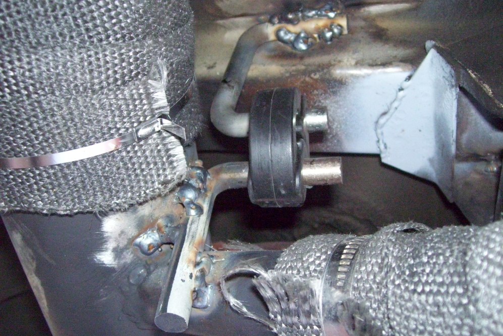 I realize I need practice welding upsidedown... I welded up this exhaust hanger to help support the front half of the exhaust.