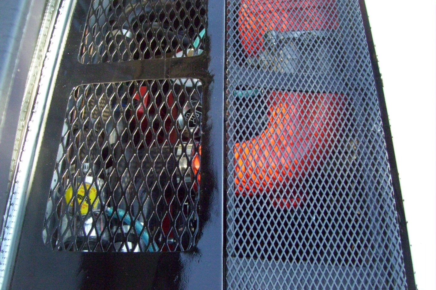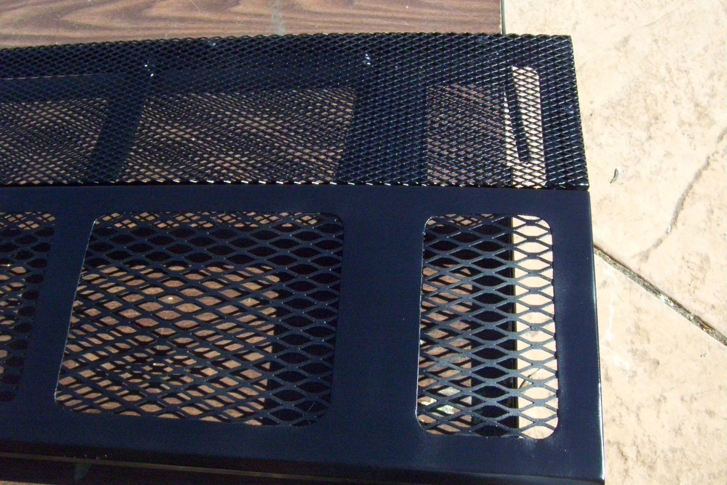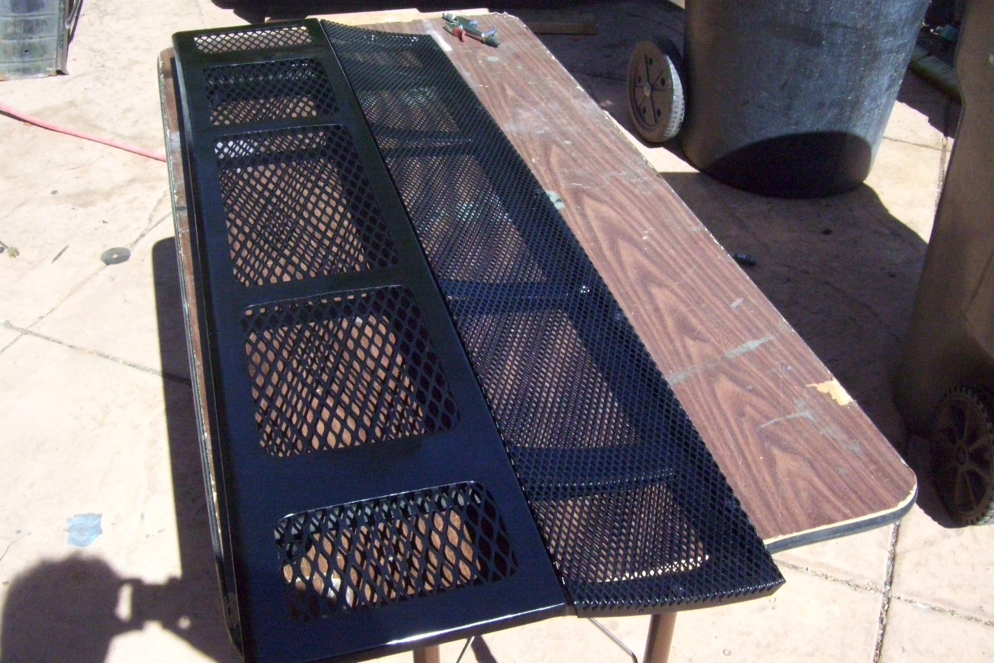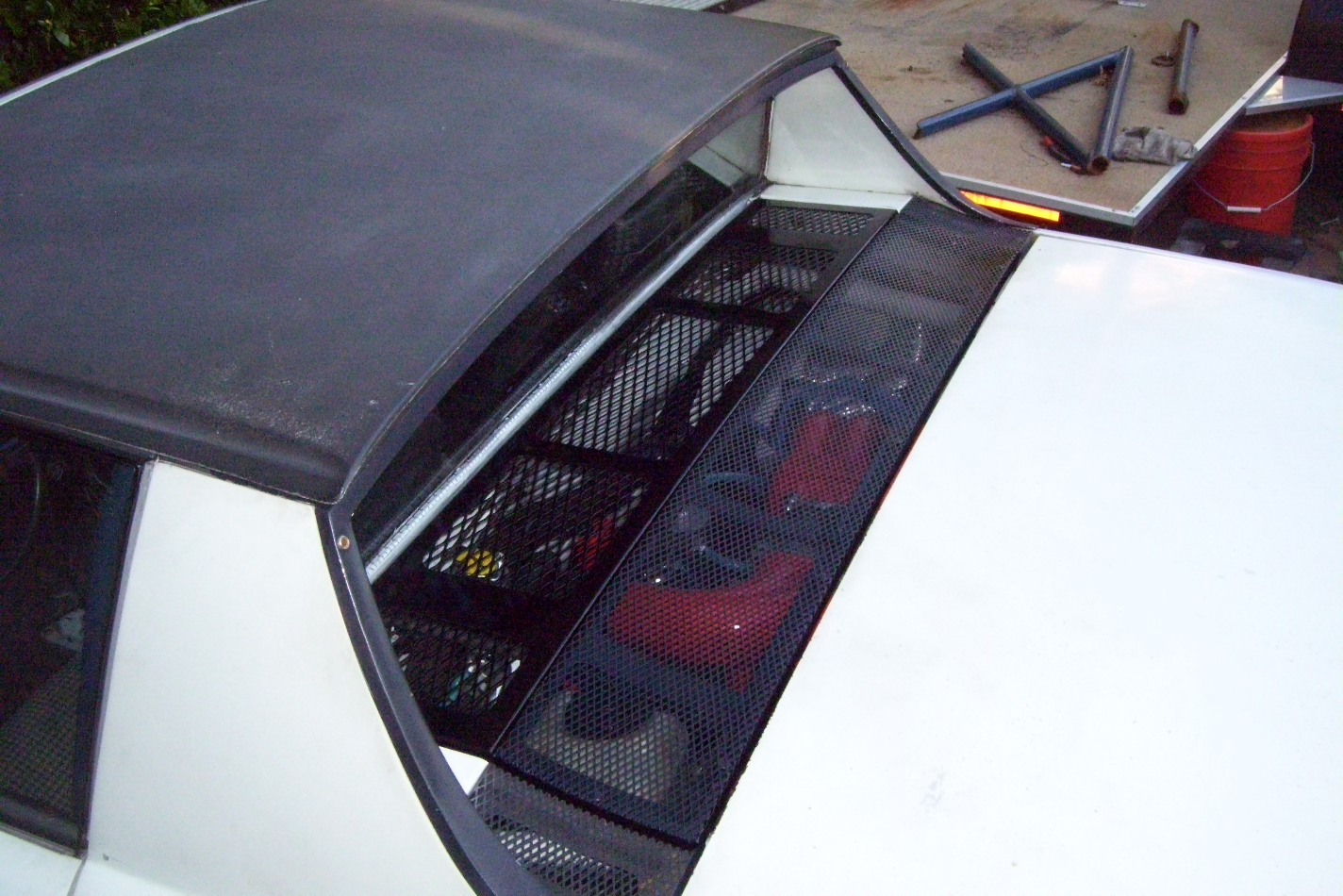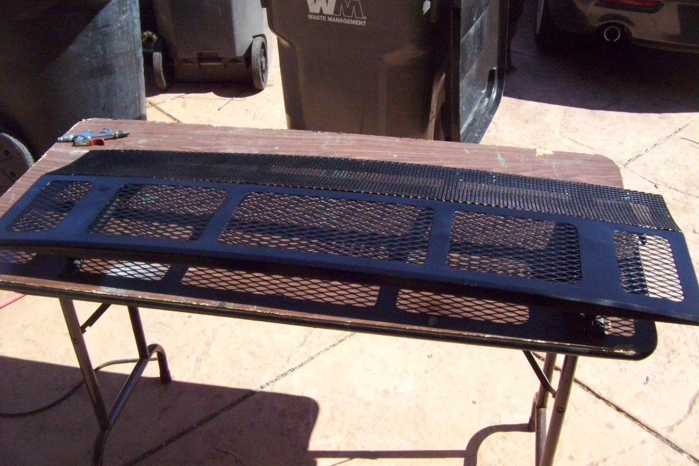 Here's pics of my interpretation of a GT lid. I cut windows in the top. I used a 1" punch to cut the corners. I then welded supports on the 2 center window supports. The window supports mimic the original supports under the stock grill. I also cut out the diagonal support. The diamond mesh is bigger than stock but I can live with it. If I decide to keep this style, I can use the mesh from my other lid. Or use this mesh and make a new on from my other lid. I also did not do too much paint prep. The whole car will get blasted next year for paint anyway. I reduced warping while welding with freeze spray. Worked great until I ran out. I used getto freeze spray. Can of compressed air held upside down.