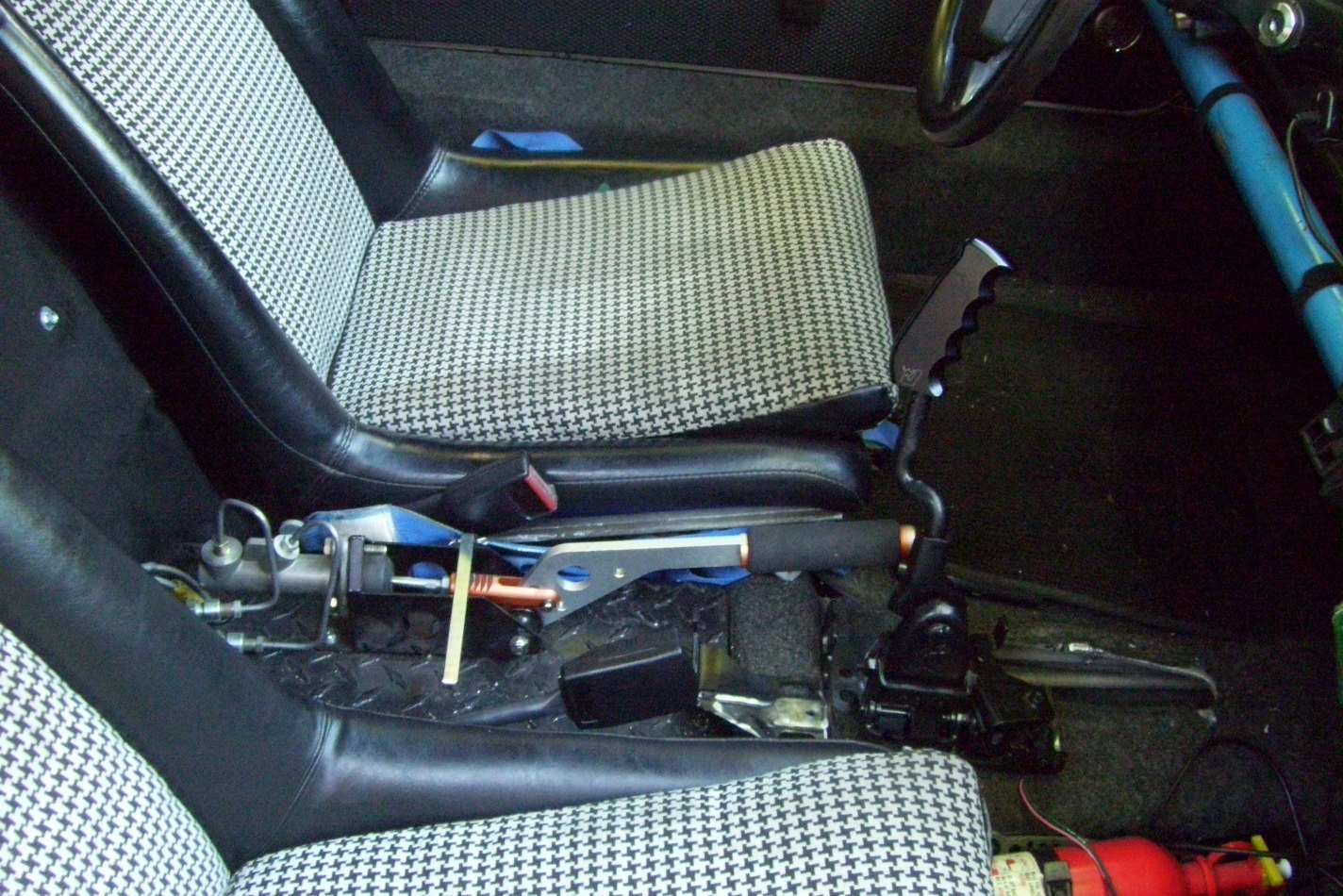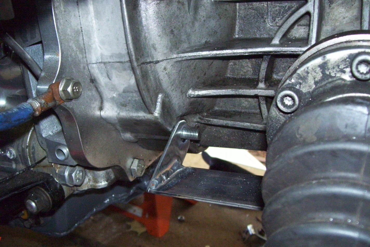 Progress! Inside the car I installed rivet-nuts in the tunnel to hold the shifter in place. My cables came in. I had to move the attachment points on the shifter. I used some 3"x1/8" stock and some square washers (HD $5) to put the cables in the right place. No binding and smooth operation. I have the vertical cable bracket welded on the tranny bracket (no pics yet) I should have this driving this weekend. (IMG:style_emoticons/default/driving.gif) Euro sunday is having another event in Walnut Creek.