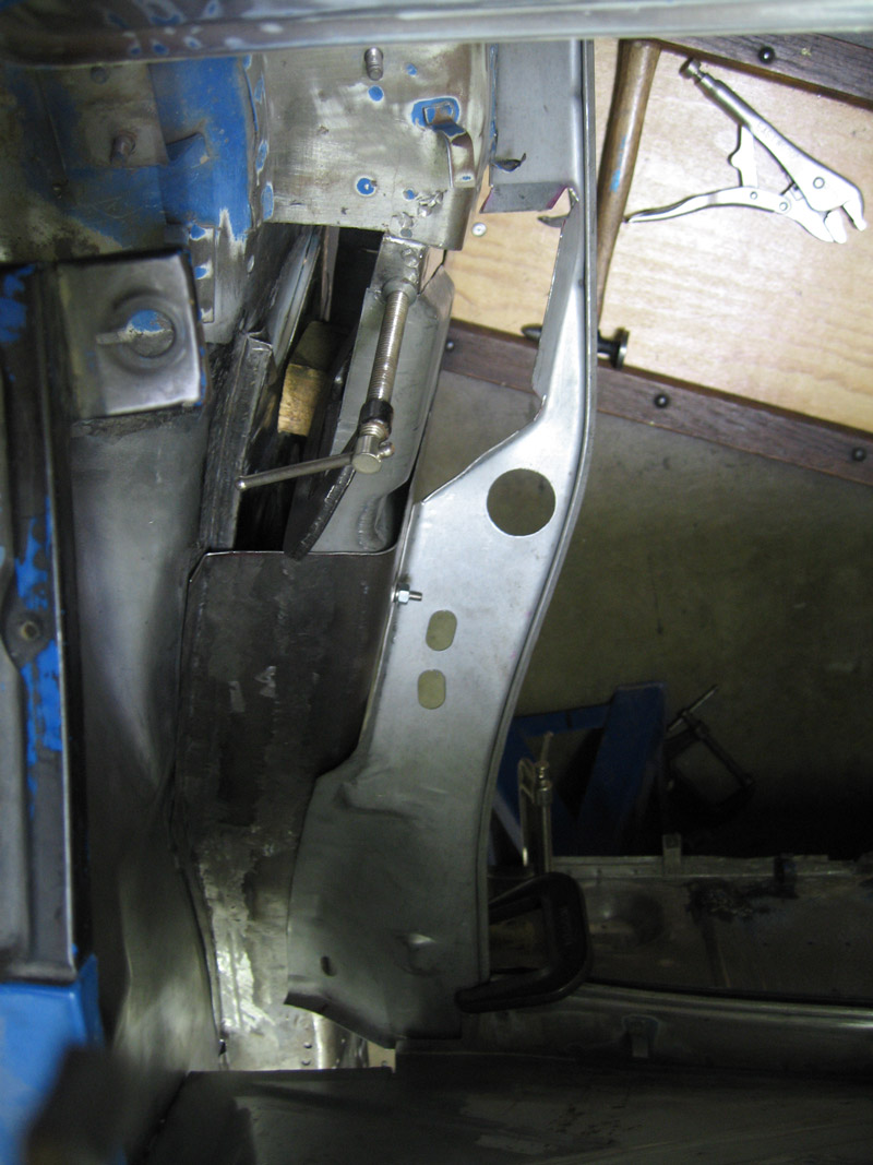 I didn't get great pics of the first bit, where I'd cut the bottom off, and exposed all the pitting and rust. The piece behind the jack plate was pitted pretty good as well, on the outside. I was torn on leaving it, but worried about what might still lie beneath, took it off. I got it under control with spot blasting and an 80 grit 1 1/2 inch roloc disk on a pnuematic mini right angle grinder. ![]() The restoration design piece was, not as ready-to-go-in as I would have liked. The original has a recess stamped in it; the rd piece, just a square hole. The replacement jack post that I ordered (wasn't sure if I'd need it) was like a gauge thinner than the original. I decided to weld the original post into the replacement hole which I made bigger. ![]() The front, also, was about a half inch short. Attached image(s)