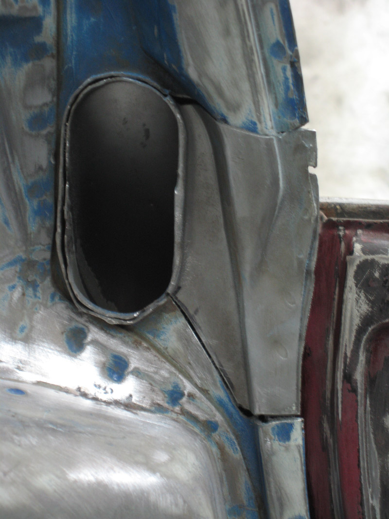 If you look at the RD wheelhouse you'll see it has flanges so it can be welded to the inner fender. One piece design. ![]() The piece Nathan built would lay inside those two piece. The seat belt nut plate would need to be removed. |