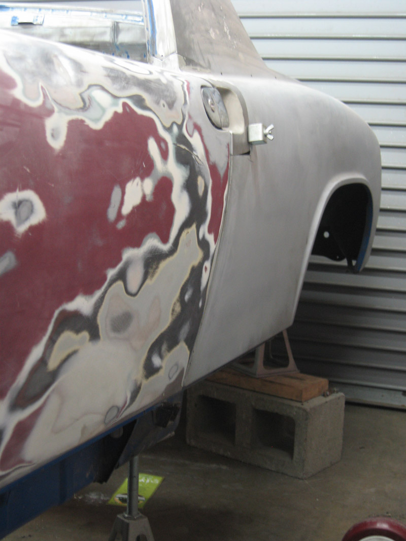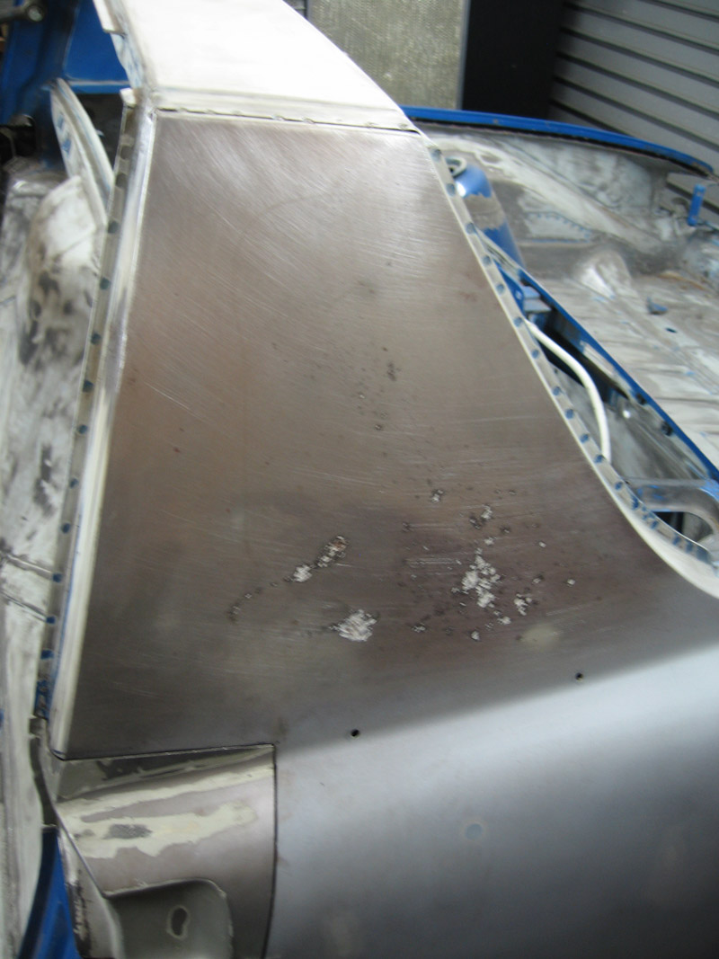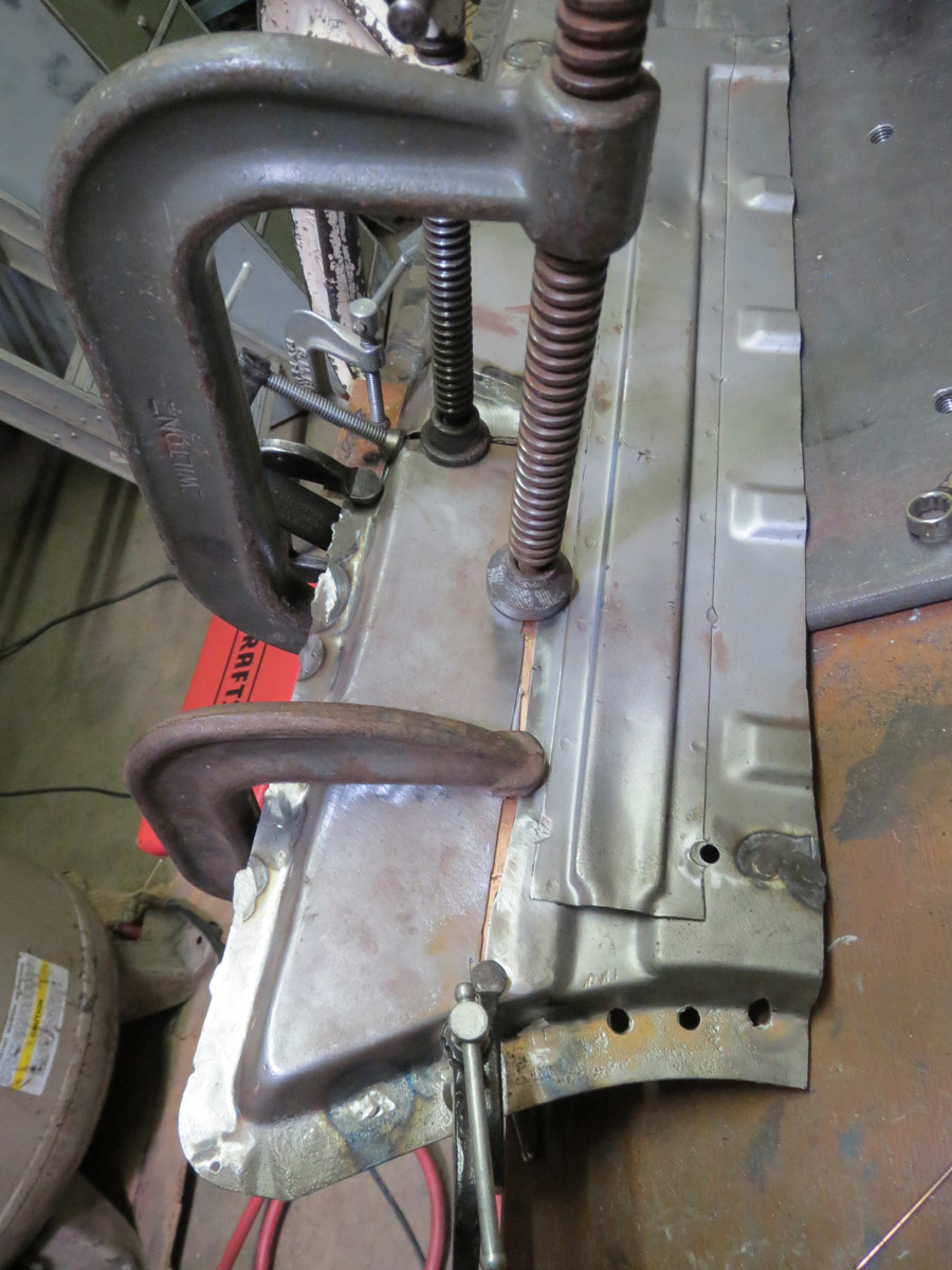 I got the seam sealer out. I had wondered how bad it was really. ![]() The new piece to go in ![]() I had damaged it cutting it out, but easy to fix. Cleaned. It is hard to get the ready-to-go-in shot because the shiny metal reflects and autofocus won't work. New piece in I have the car back on jack stands (off the dolly). But, besides the 2 flat-tops, they are all leveling jack stands. I've got the car leveled using a machinists level, supported by 4 pairs. (IMG:style_emoticons/default/rolleyes.gif) - thats 2 at the firewall, 2 by the front firewall, 2 at the front and 2 at the rear trunk area. There are also some random additional stands positioning the firewall and floor for fitting purposes. I have the driver side braces removed from the door to make sure gap is right and for fitting the air inlet piece. So far it is just fit up, not welded in....still wondering about this pitting.... I may get the spot blaster going on it and see what is under the white stuff. |