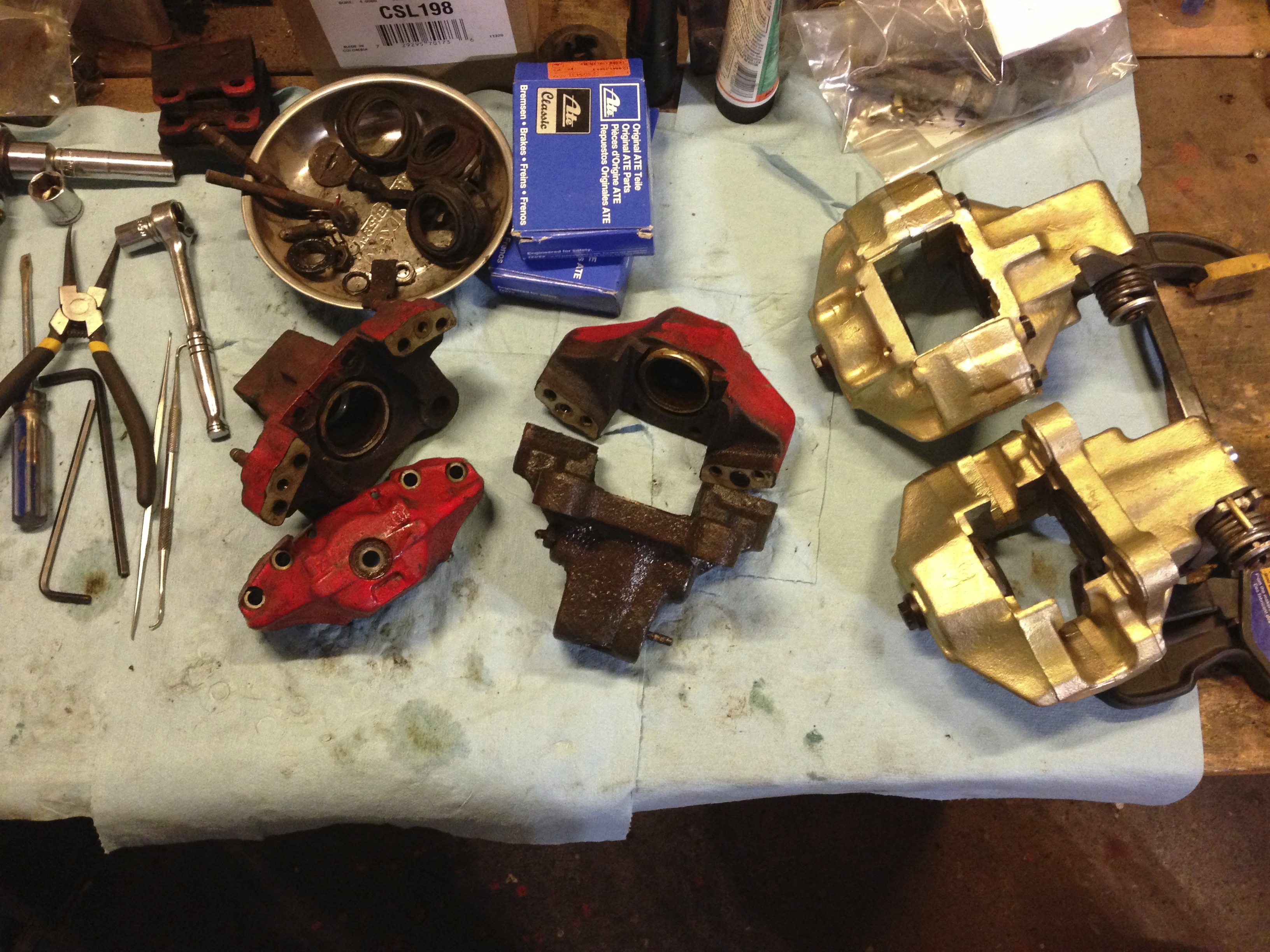 I got the 911 T struts, callipers and hubs from Eric Shea last year and put them away for a while.. Not I got new bearings in them and finally got around to ordering the strut inserts and pads from Eric. Attached thumbnail(s) |
