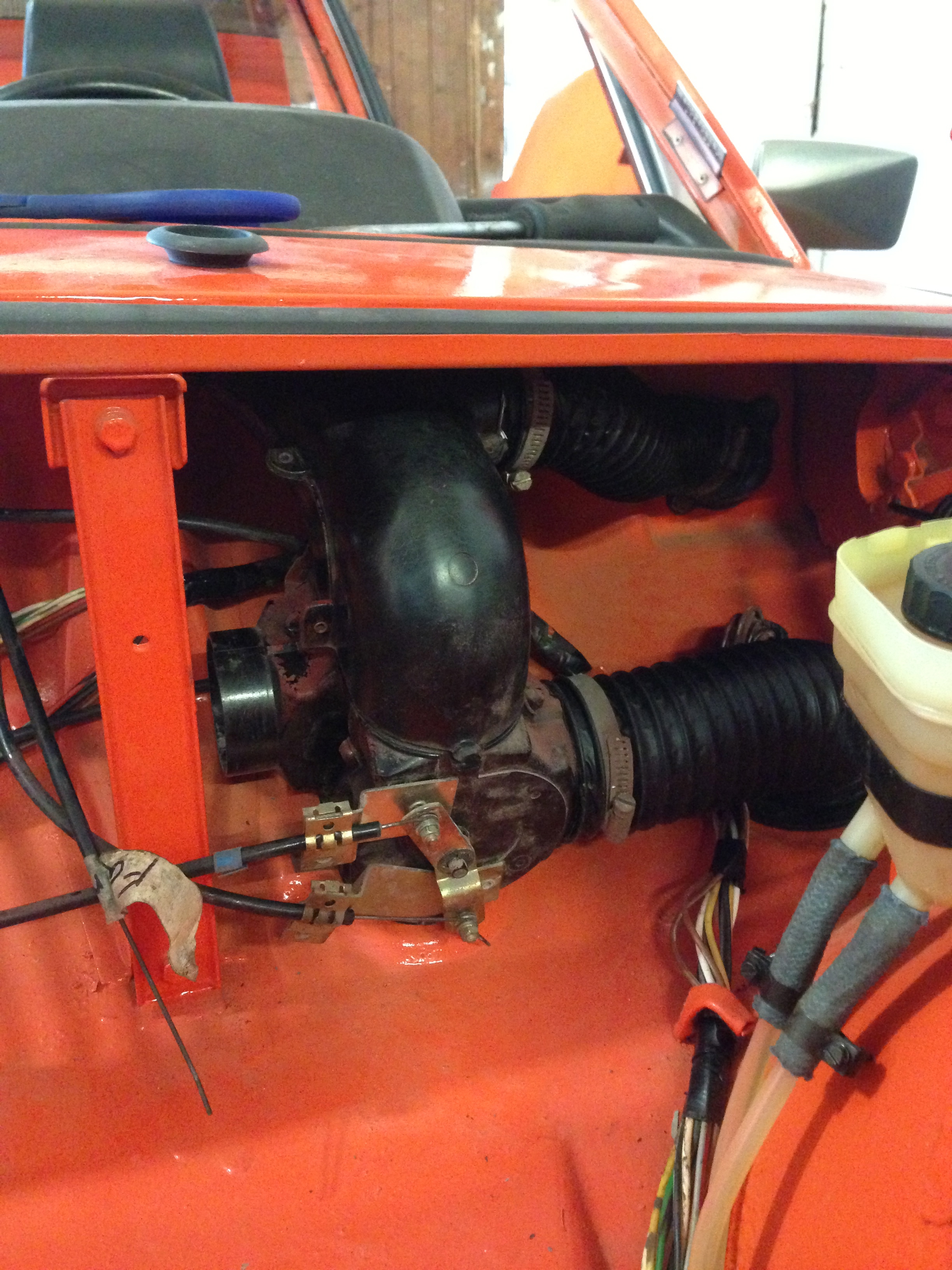 been tinkering away since I've been waiting for my cylinder shims to come in.. Got the headlight buckets all hooked up and the motors wired in. also got the ventilation diverters and controls put in. They're mostly there so whenever I get the heater box for my tangerine exhaust I'l have the rest of the components hooked up. Also got the wiper motor installed. Didnt take pics of the headlights or the wiper motor...