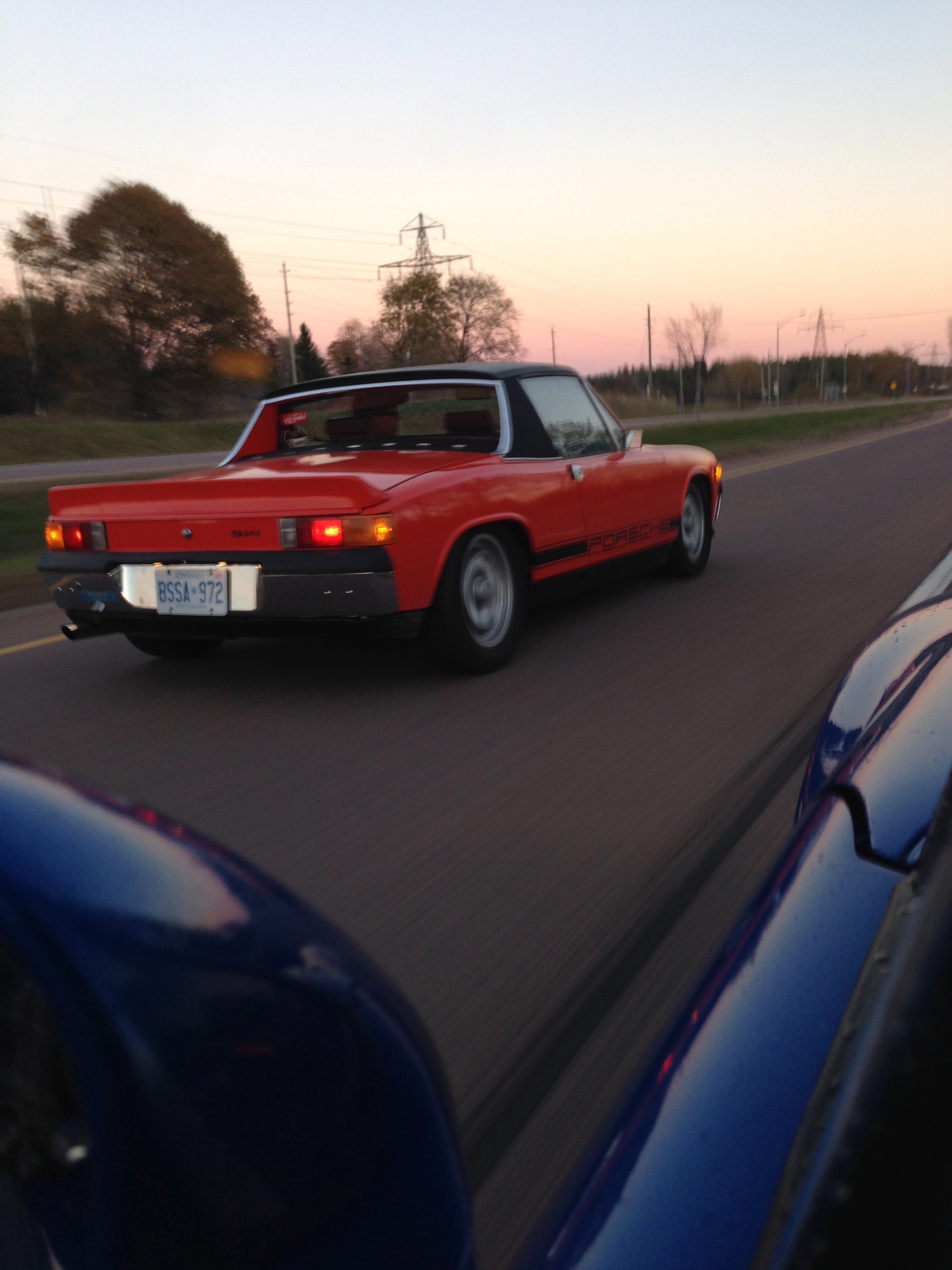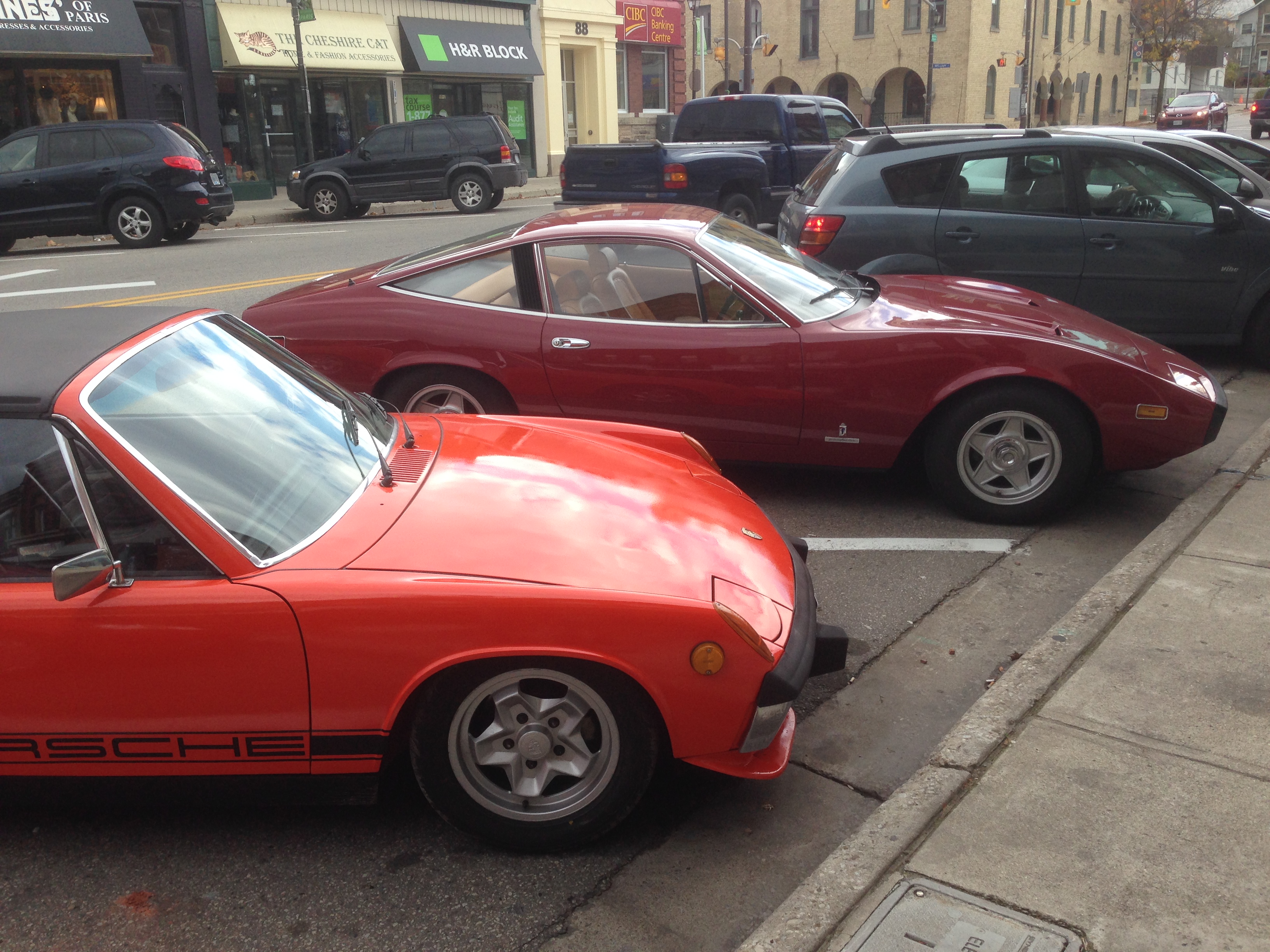 Anywho... Car is running great so far. I think i need to adjust the valves a little bit again as i can still hear them a bit. Had a small drip leak out of the right side valve cover that I've fixed up. Idle is decent, and the motor pulls REAALLLYYY nice. The tangerine racing exhaust sounds GREAT ! Adjusted the transmission linkage a bit to get 4th and 5th gear.. 4th is still a little difficult to get into but 5th gear still alludes me. More adjusting required. :-) Poly graphite bushings in the trailing arms squeek and creak a lot. They are coming out this winter.. Car drives straight and breaks work well.. They aren't as firm as I'd like, but that can be tinkered on as well. :-) Took my wife out for an afternoon drive.. There was quite a few old cars out today. Most likely one of the last nice days before all the old cars go away to hibernate. Parked beside this Itallian junk. Attached thumbnail(s) |