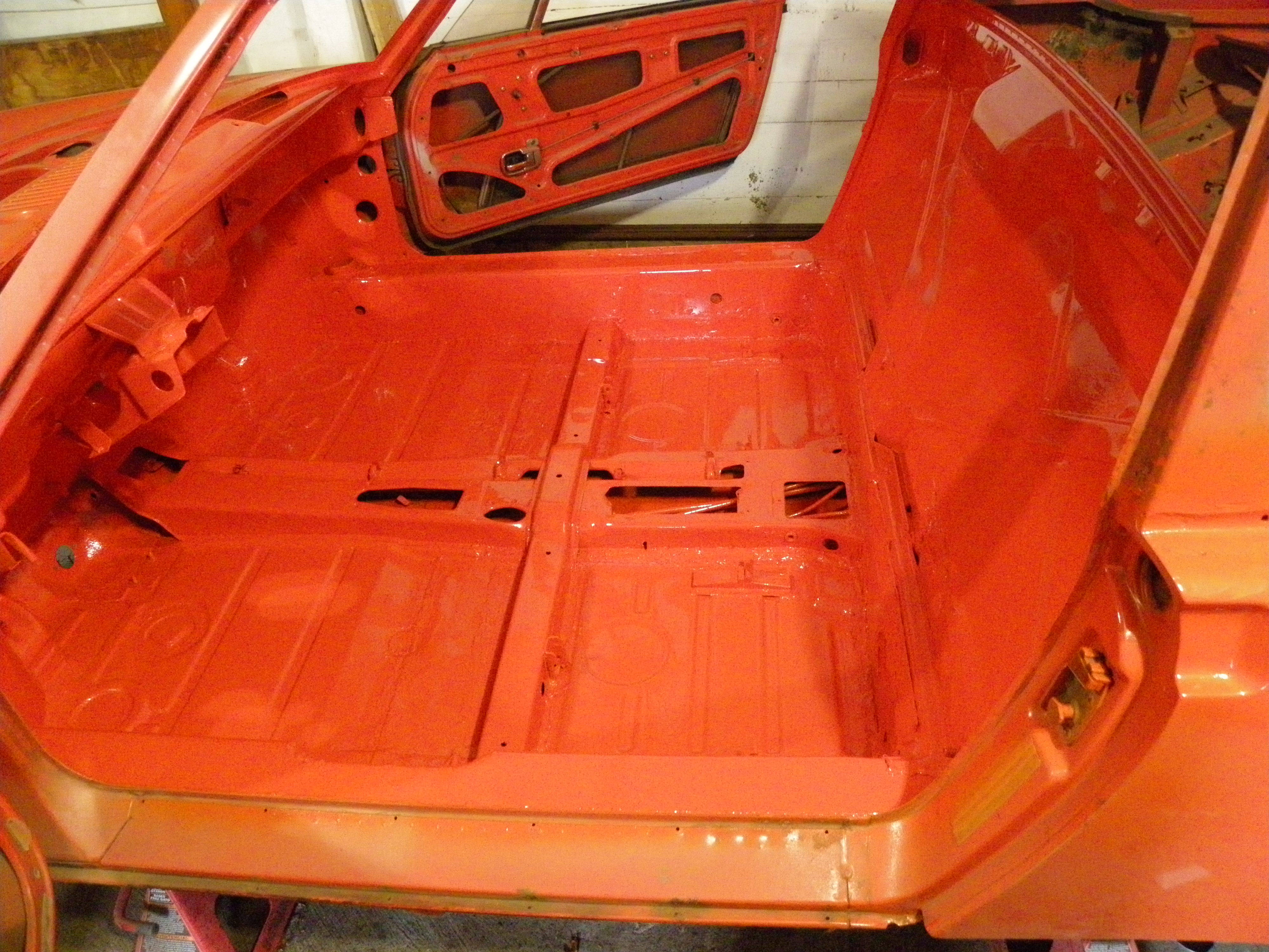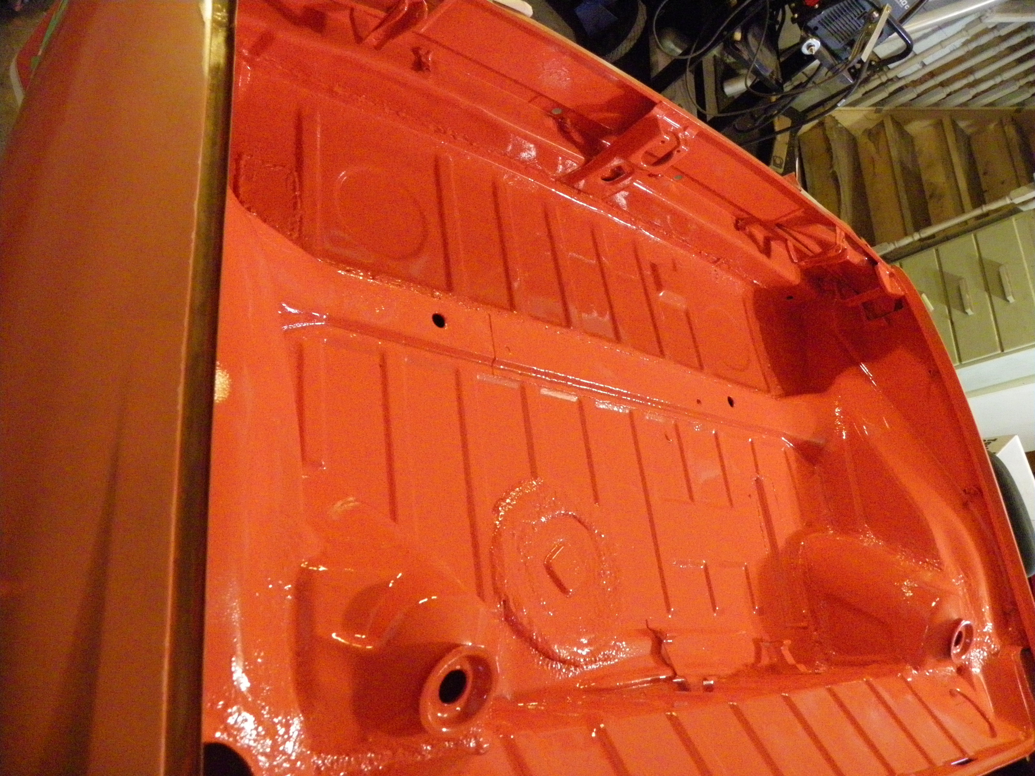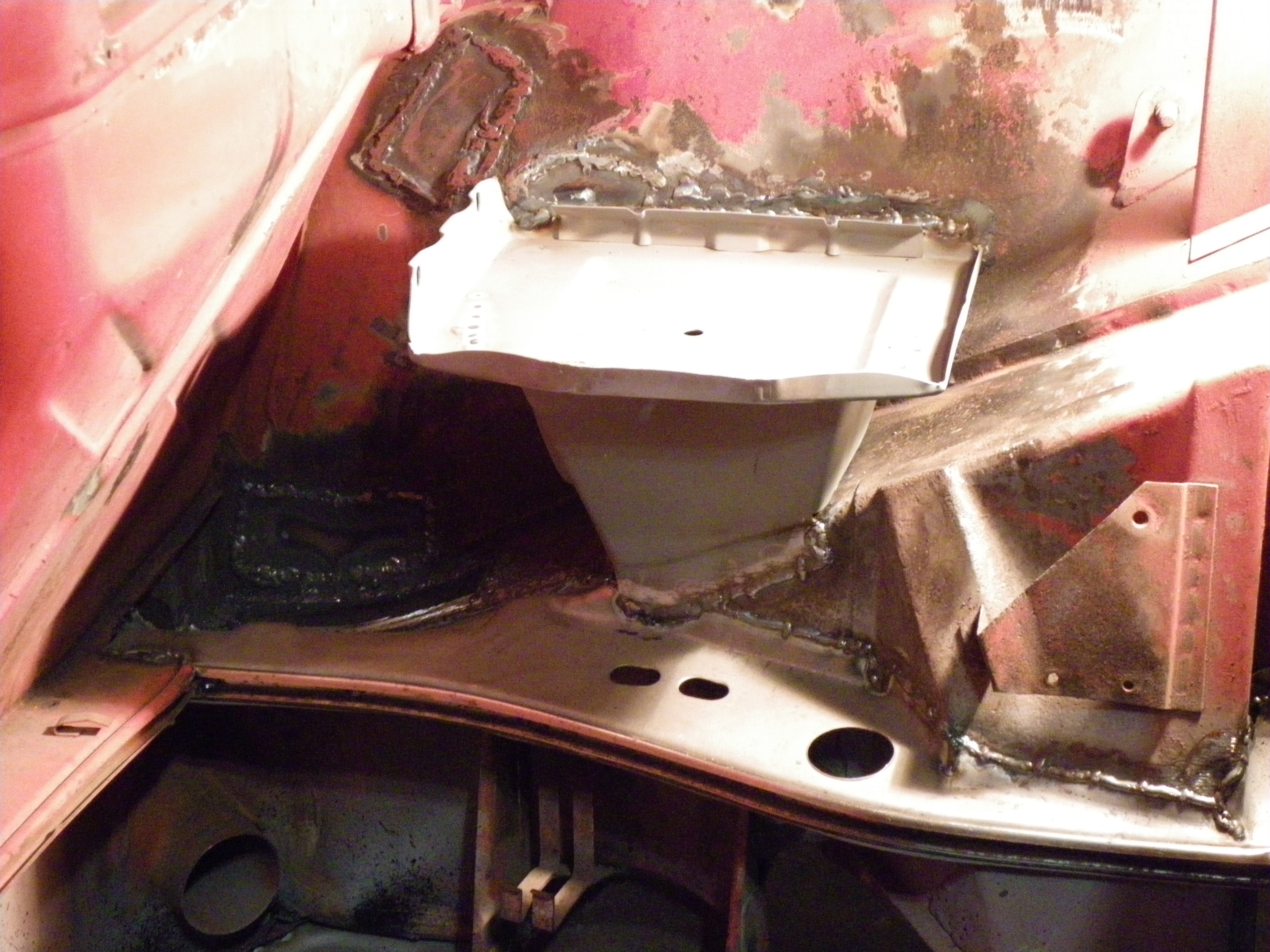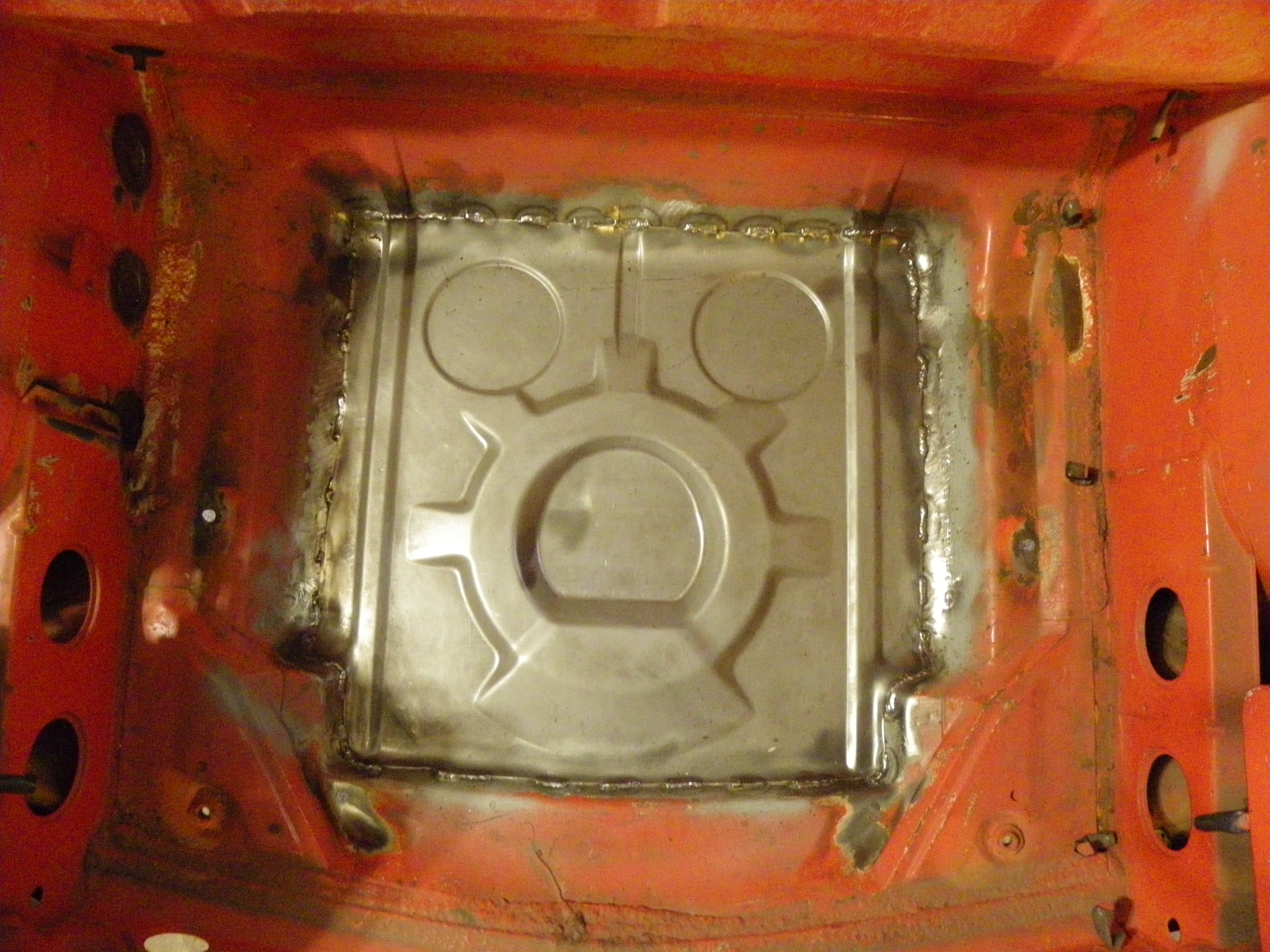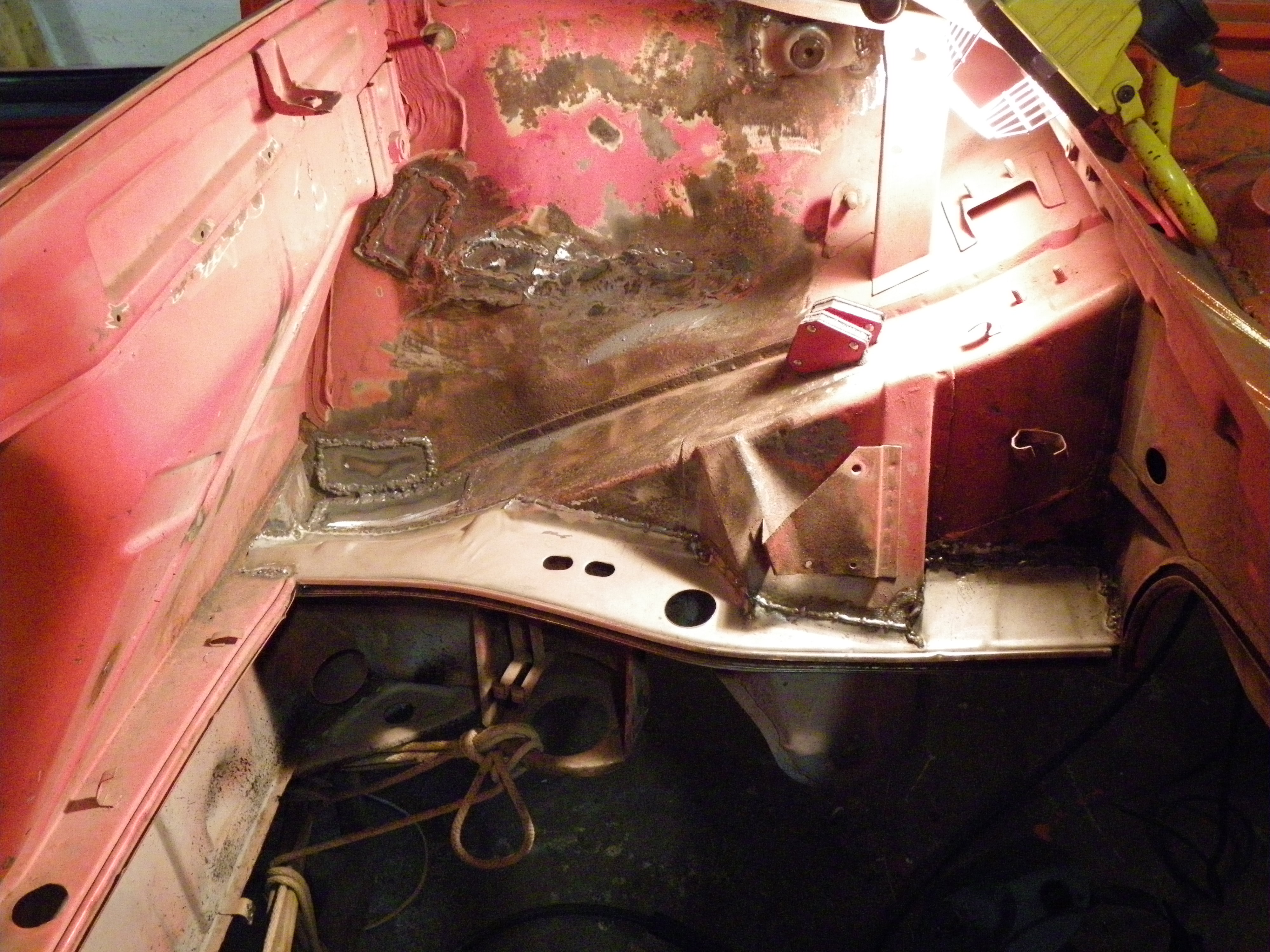 Finished off the rear trunk today. Welded in rear trunk pan, patched top of rear trunk a bit. welded in the rear sway bar brackets, new rear number reinforcements and all painted top and bottom.