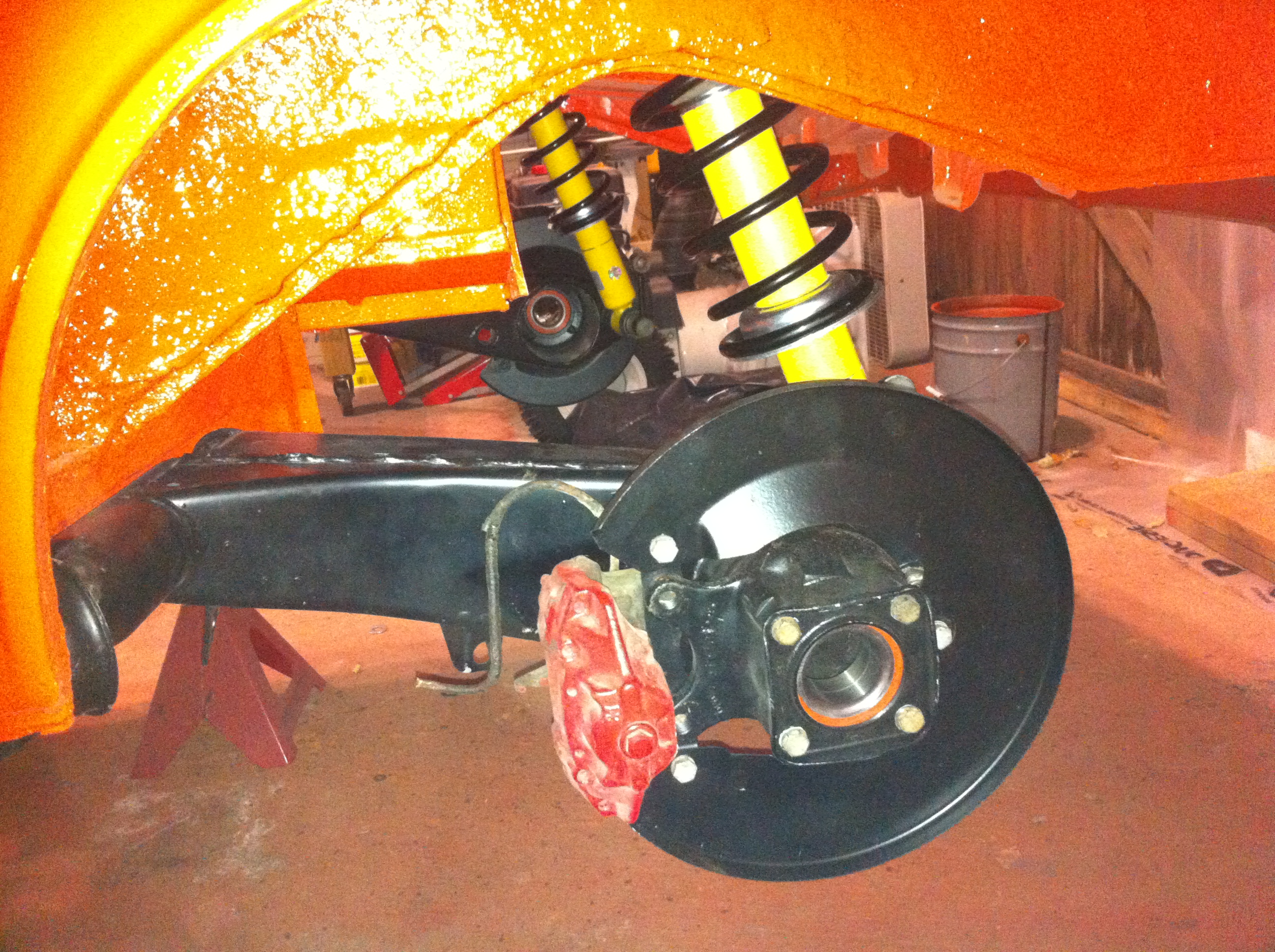 Got the front truck cable and latch installed, and the engine lid cable and latch. Also got the shock/springs bolted to the swing arms. Starting to look a bit better now (IMG:style_emoticons/default/smile.gif)