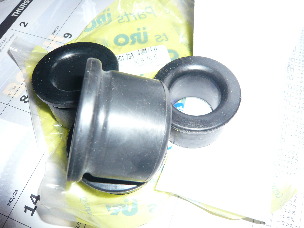 Here is a rubber set that is not hundreds of dollars, but about $60 for the budget/ the poly graphite used to be $70 when they first came out, and people did have problems.. http://www.automotion.com/neatrix-front-a-...or-porsche.html and another source oem ect.. http://www.sierramadrecollection.com/store...tail&p=3638 I tried both poly graphite and delrin and did the home boring (should have went to a machine shop) with a brake hone and had rattling on a couple, and on the other set I did not bore enough and the supsension would not move or do not listen to the lie that they will break in after 30 days, I needed a kidney belt after one 3 hour drive trying to break them in.. Then there is the issue of sag and how long will plastic of any type really hold up or last? At first they sold as the ultimate and now well the price is dirt cheap and everything else speaks for itself.. Rubber stock lasted this long, so probabaly get a good run out of more rubber.. Oh and one hint fire is your friend, torch out the old ones if you can't get them loose... Lot's of dish soap and water to get the new ones on, I did not have a vice big enough so I used long plastic clamps that have a hand squeeze trigger like you would buy at home depot.. and make certain they are on all the way before the soap starts to dry and they get stuck solid.. quick! firm! slippery! you can put them on the car immeadiately if your carefull not to lose position that way you can check that they are indexed properly for fit and function, then I waited overnight before I drove, perfect ever since.. It was alot of work for me to do the whole car 3 times, but I must say I am happy with the rubber and it gives a softer stock ride.. The other is more like a dance when done correctly I am told.. But I will probably never know. |