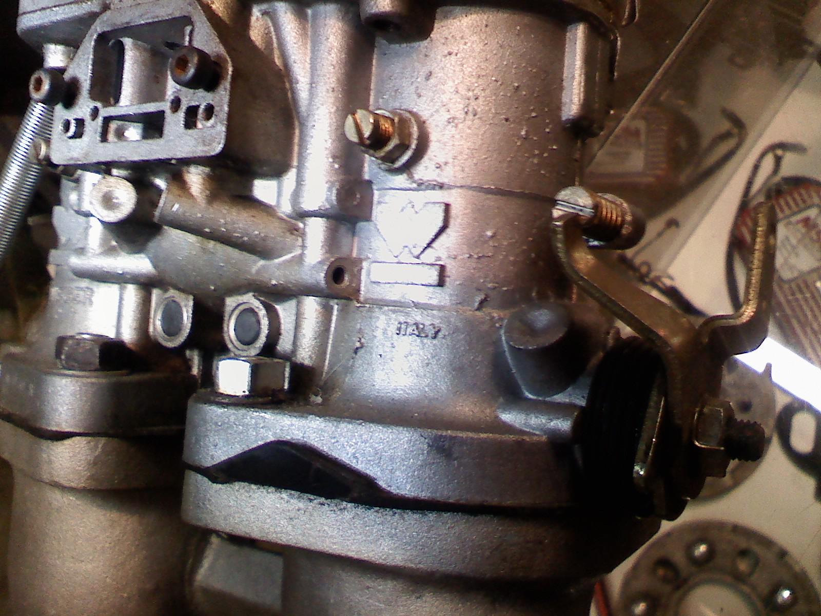 these are not mine. I am helping a friend to whom I owe a favor OT: interesting that I took these with my cell phone but some are 230K while others are 45k size WTF...over? ..............the opening on the side of the carburator (where two screws are installed) needs to have the gasket and cover installed. If missing, they can be pursched at the major weber suppliers...The center linkage pull, and intake manafolds, carbs should be worth at least...$600.00. IMO. they would certanily be worth more if You verified the float level, installed the correct jets, and pre run and tested them for the purchaser. |