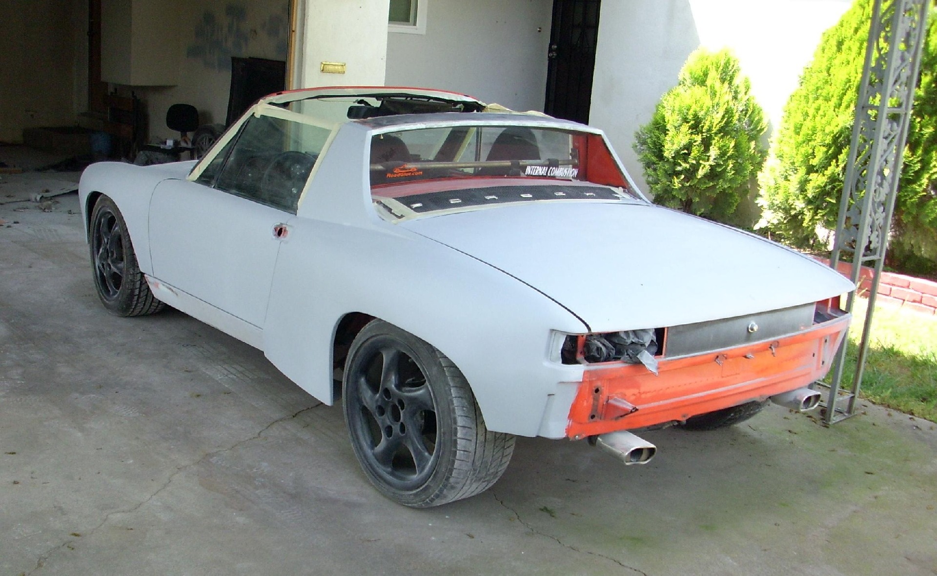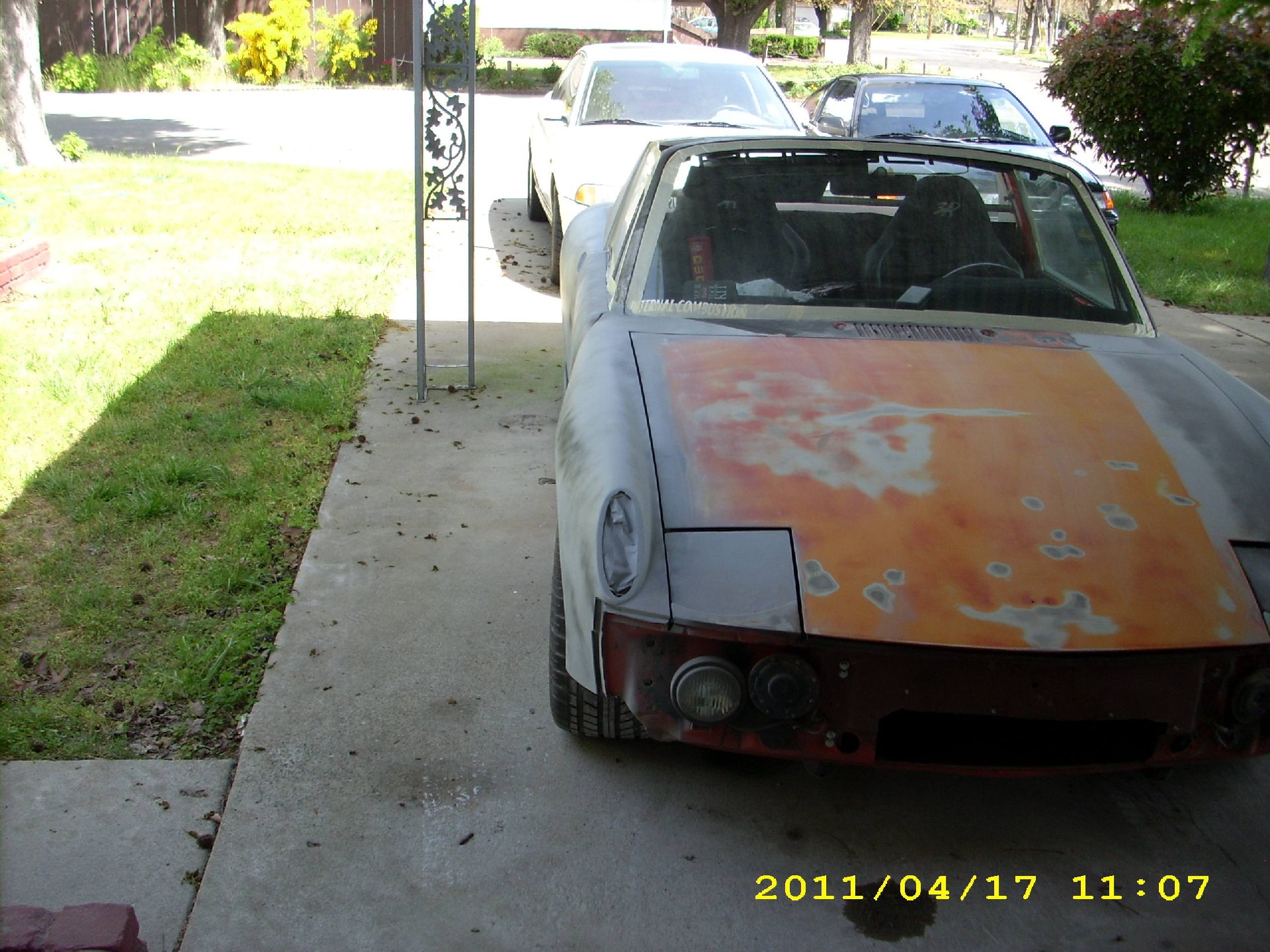 Saturday morning I installed a 2500CFM fan in the garage! Picked it up for $100 from a body shop that decided to stop priming in their main shop. (original price was $260). Up and running in a hour! (IMG:http://www.914world.com/bbs2/uploads_offsite/i1210.photobucket.com-172-1303750060.1.jpg) (IMG:http://www.914world.com/bbs2/uploads_offsite/i1210.photobucket.com-172-1303750061.2.jpg) Spent a bunch of time sanding the cowl area (read 4+ hours.. Apparently no one bothers to sand those vent holes and the wiper holes) (IMG:http://www.914world.com/bbs2/uploads_offsite/i1210.photobucket.com-172-1303750062.3.jpg) Sanded and primed the rear as well (IMG:http://www.914world.com/bbs2/uploads_offsite/i1210.photobucket.com-172-1303750062.4.jpg) (IMG:http://www.914world.com/bbs2/uploads_offsite/i1210.photobucket.com-172-1303750063.5.jpg) (IMG:http://www.914world.com/bbs2/uploads_offsite/i1210.photobucket.com-172-1303750064.6.jpg) (IMG:http://www.914world.com/bbs2/uploads_offsite/i1210.photobucket.com-172-1303750065.7.jpg) (IMG:http://www.914world.com/bbs2/uploads_offsite/i1210.photobucket.com-172-1303750065.8.jpg) All went well till I went for a second layer of primer on the targa bar.. (IMG:http://www.914world.com/bbs2/uploads_offsite/i1210.photobucket.com-172-1303750066.9.jpg) I was PISSED OFF... This was supposed to be the last final layer of primer on this side.. Damn. I sanded this all down last night and its ready for a second coat of primer fill on a couple area's. So i'll get the fender and those area's in primer tonight hopefully. Im ordering paint today FYI. (IMG:style_emoticons/default/smile.gif) |