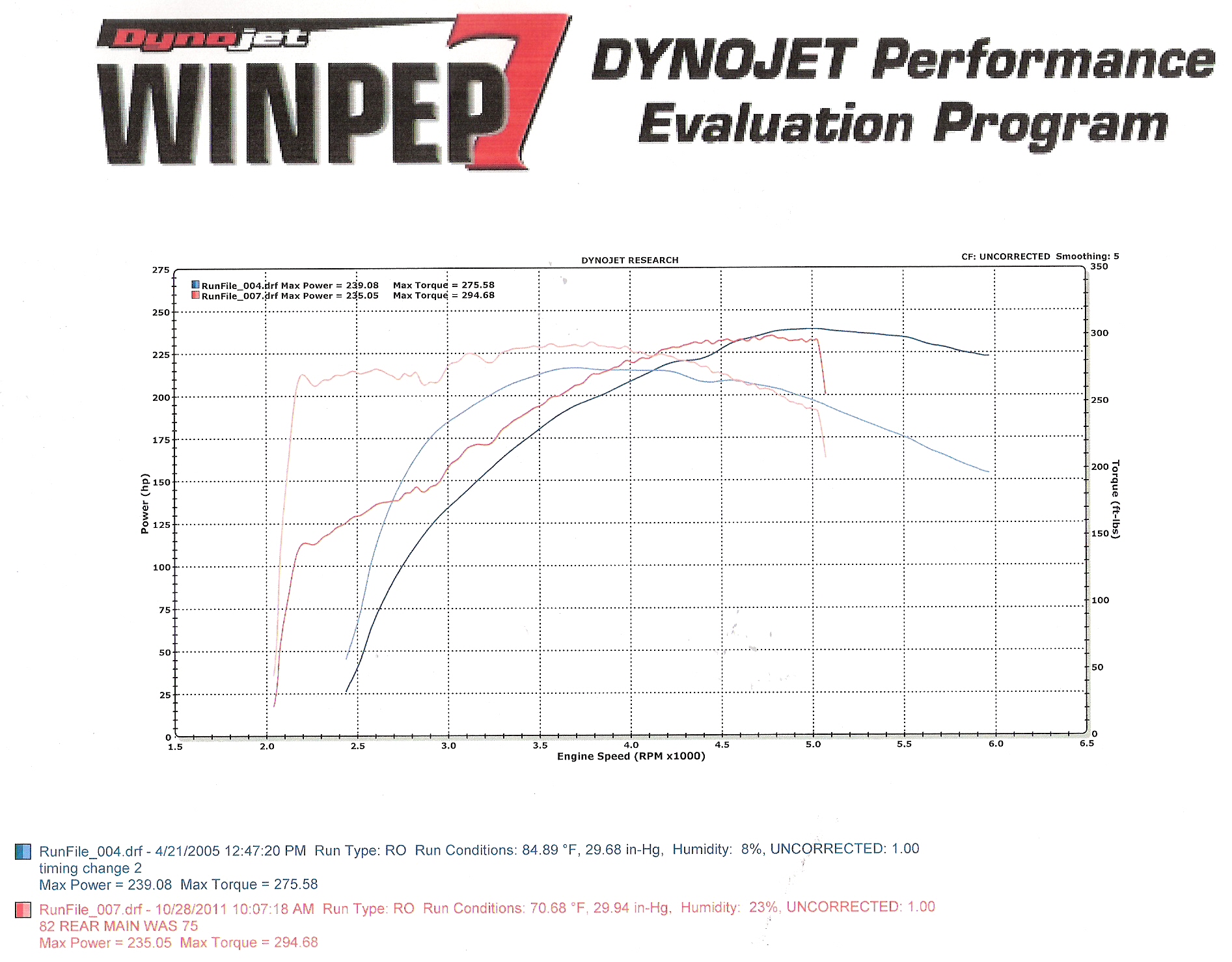 Heres the dyno. Red line is current. Blue line is 2005 dyno. Dont know why they didnt rev it past 5k but thats ok.