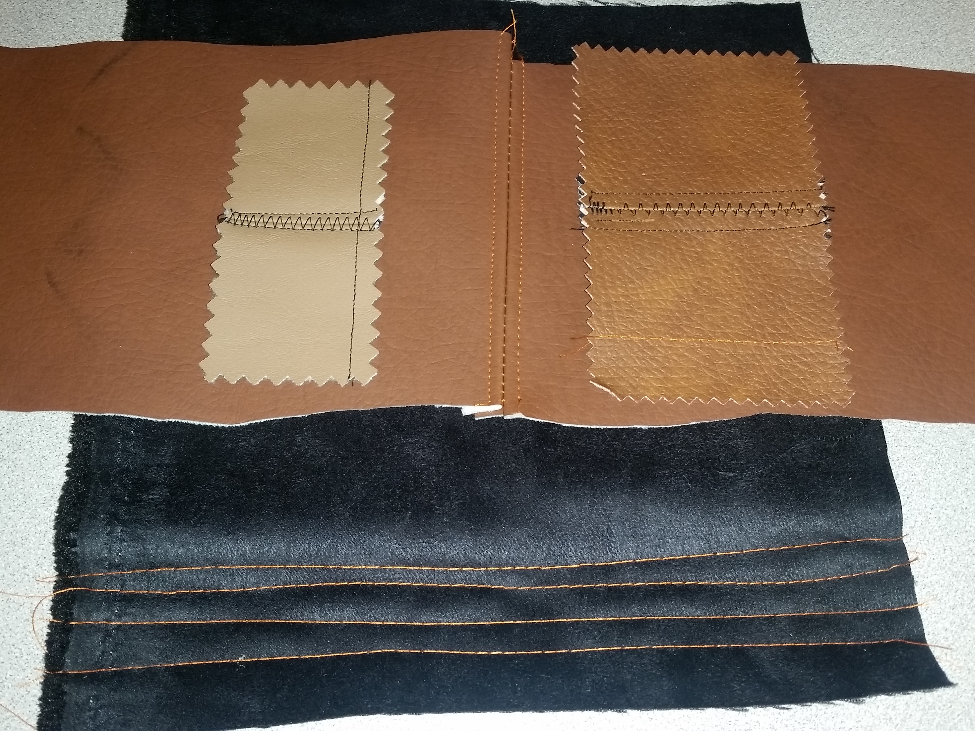 On a more promising note I did receive my Boxster shifter and linkage!! Also I have been playing around with fabric for the interior and practicing sewing (IMG:style_emoticons/default/smile.gif) Deciding on colors for the interior, but I think I want to match this with orange stitching, and black suede for the seats/doors with leather accents. I've always loved brown interior, never had it! Attached image(s)