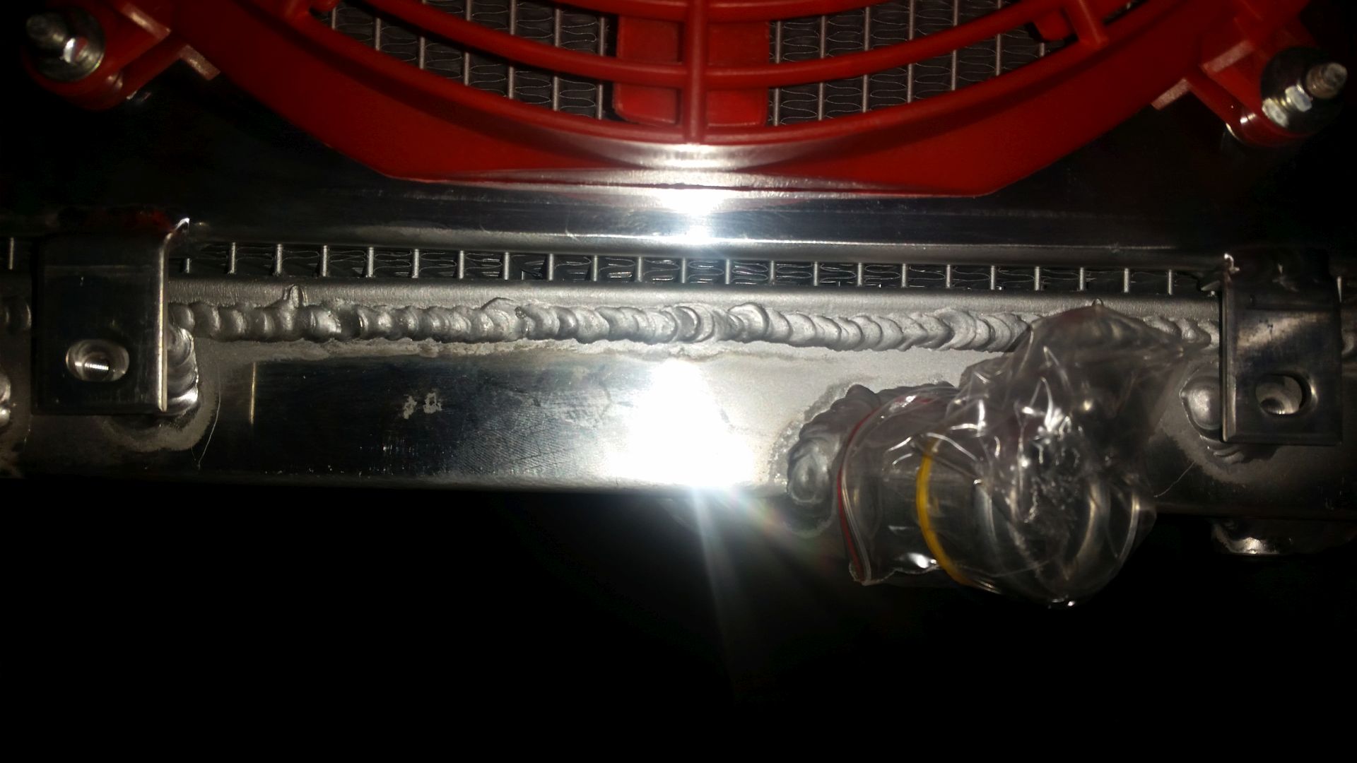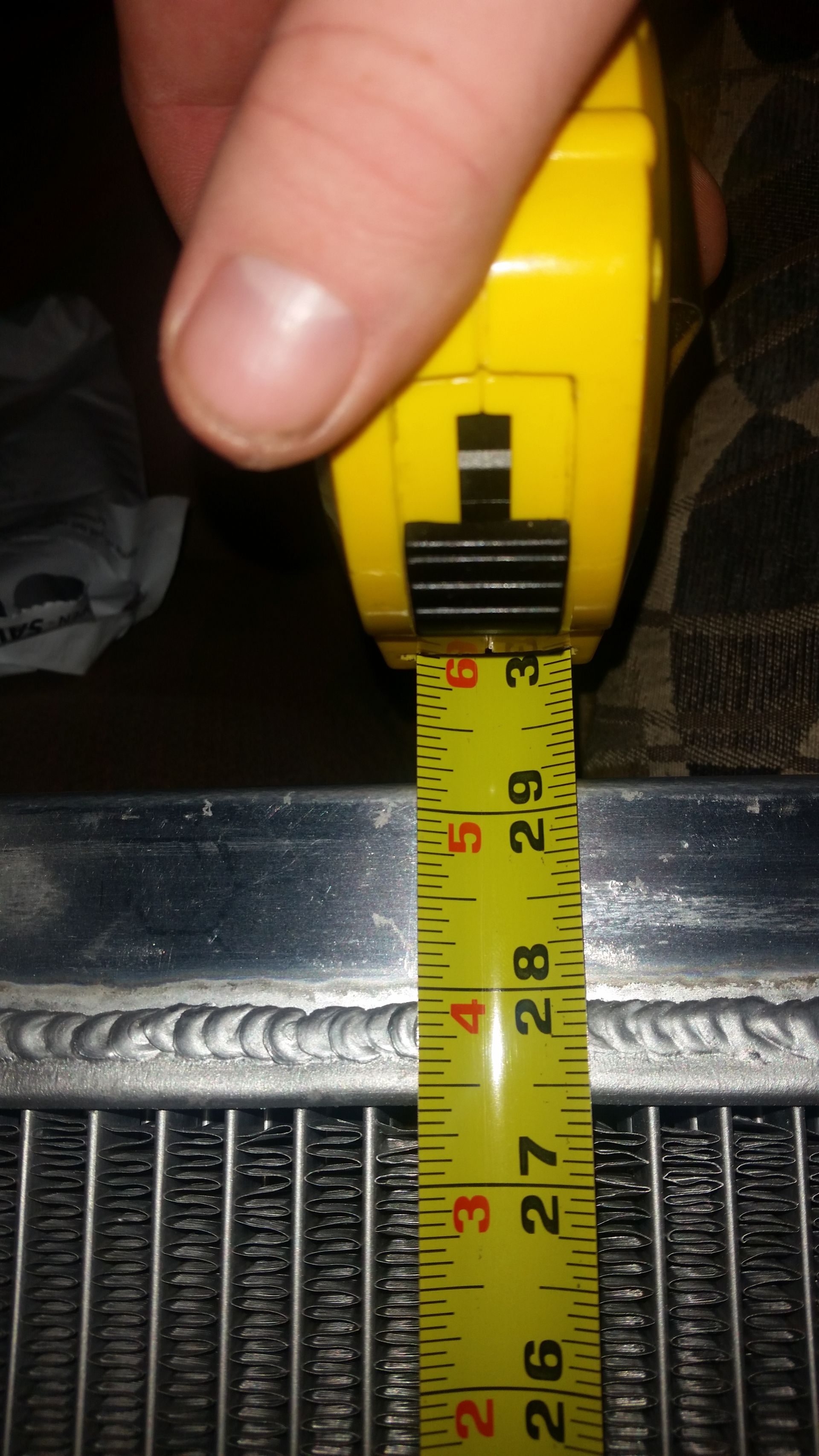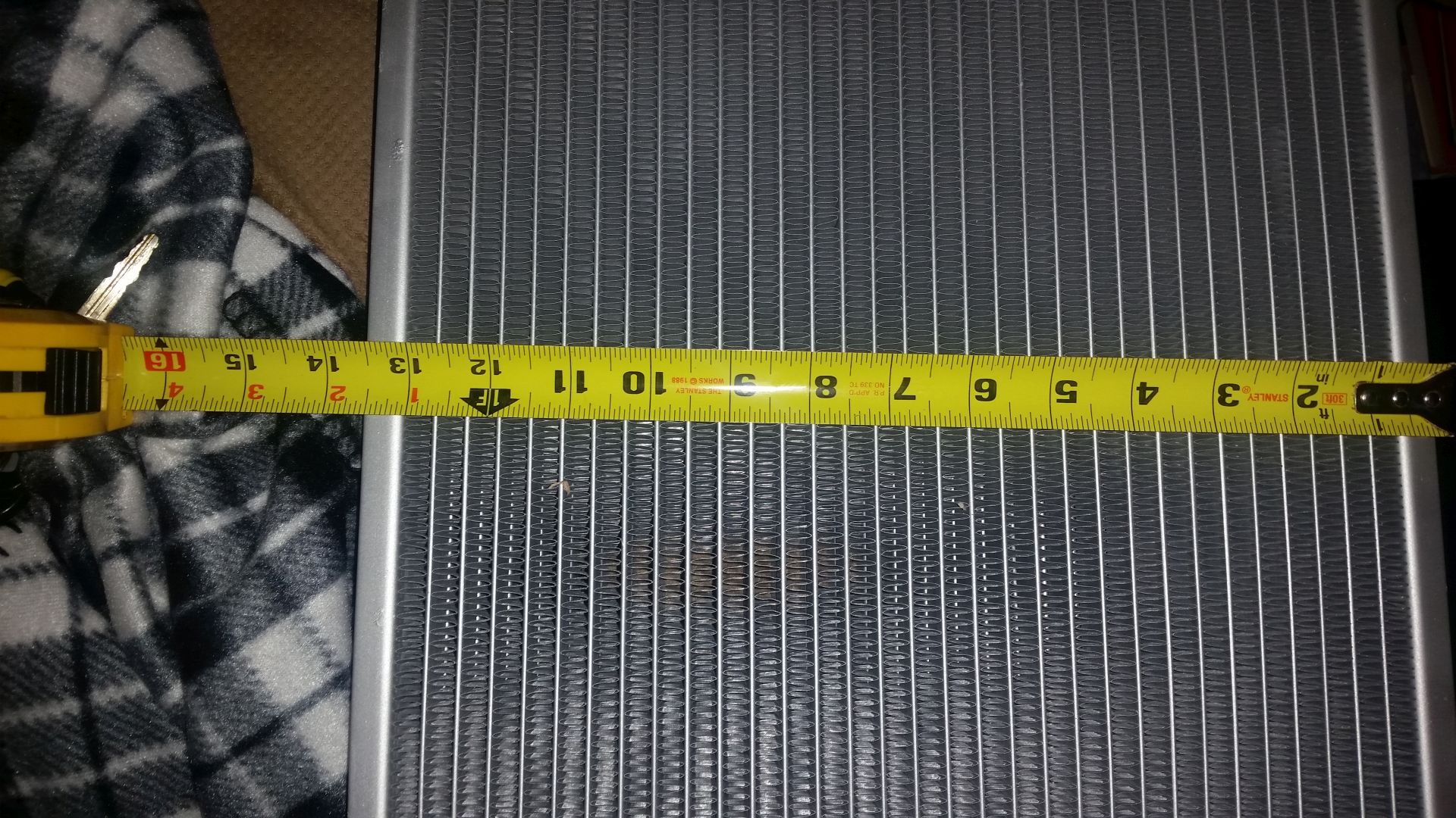 http://www.ebay.com/itm/180901154597 Comes in two boxes separately, packaged fairly nice. However one of my plastic drain plug screws was broken. I plan on plugging those with a bolt anyways. Core height Actual height with mounting points Width inlet to outlet width side to side top, also shows plastic drain (one in upper right and lower left) Width of the side tanks middle Horrible placement of tabs for the radiator shroud. I THINK it will bolt on but totally skewed angle and it doesnt really sit flat. I'll be using a gasket/foam underneath. One hole lined up... This was with the shroud in what I believe to be optimum position. Total width just under 6", Core width is a full 2" Side note, Core is a true 2 row. You can see/feel inside where the hose inlets are, and it looks to be of fairly good construction. I also tested the fans and they did not flow what I felt to be enough to cool the system, Especially if I have a condenser in front of it. Fans are a claimed 1250 and I suspect closer to 7-800. I have an old Audi 12" fan that pushed out noticeably more air in a more uniform fashion. Also my 16" fan just blew both out of the water (For kicks my Lincoln mark 7 fan pushed ME back...) I suspect I will be replacing the fans down the road, probably before I even run them as they are just some Chinese fan.. |