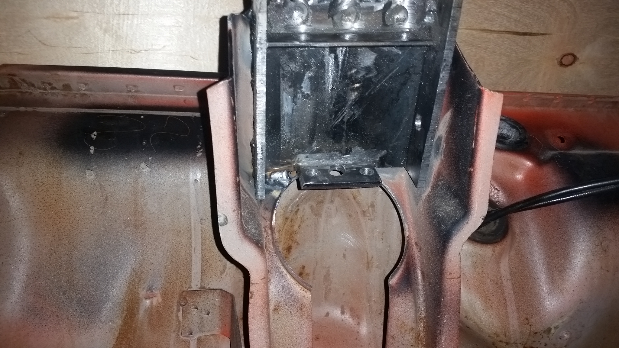 Unlike Mike my steering column was not surrounded with steel it was surrounded with aluminum (IMG:style_emoticons/default/dry.gif). So I first had to build a steel enclosure for that and then mount that to the 914 body. I decided to weld it and bolt the Audi column to it. (Secured with 8 1/4x20 bolts and an extremely tight fitting enclosure, Hammer required) |