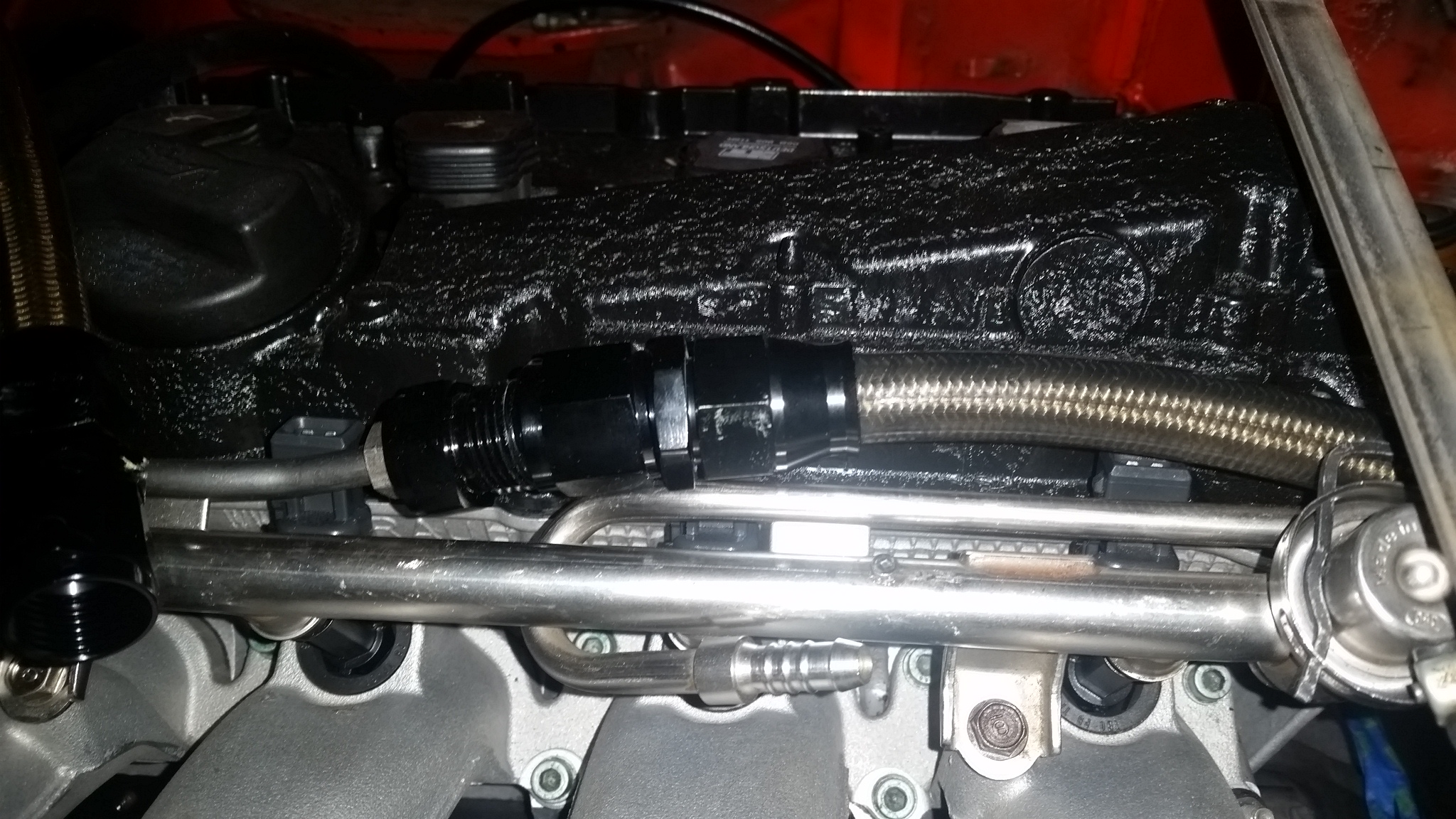 All that work and your running a stock fuel rail? I was told it would not be the restriction until about 600hp, and with my AN10 supply lines probably not till way after that. Ill change it if I need to but right now I didnt want to deal with it. Assuming it doesnt leak... |