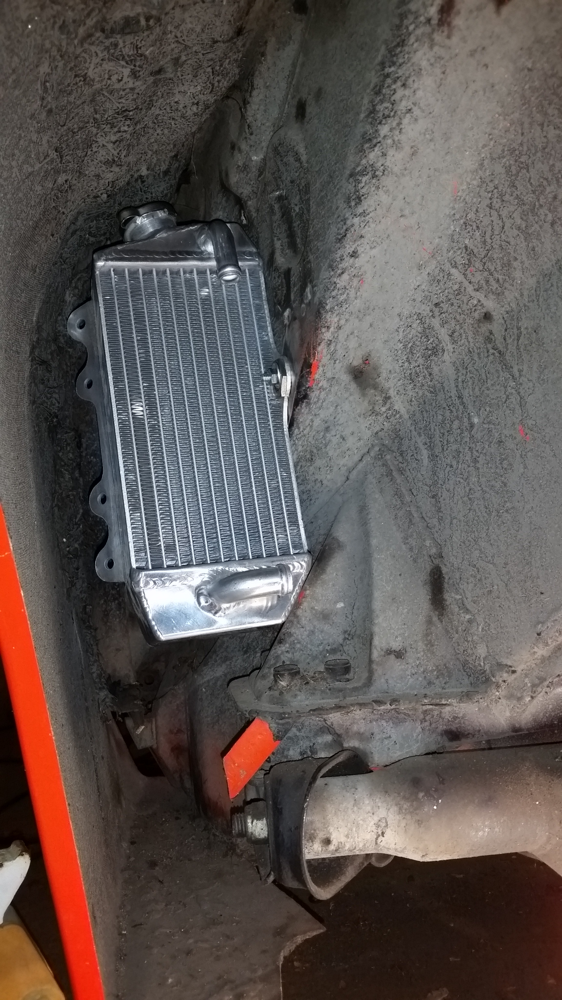 Mounted the W/A IC radiator. Just one bolt right now. Trying to figure out the rest still.