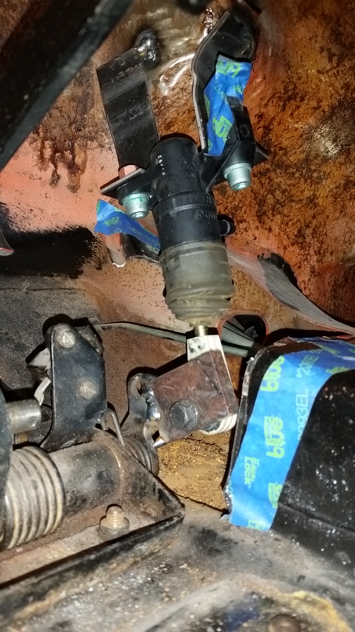 Ill tighten it up and try it on the ground. If I dont like it ill scrap it and try again. Not screwing around with my steering column... ![]() So the welding I was speaking about.. I worked on the clutch master. Pictures explain it pretty good. I am moving the pivot about 60 degrees so the master cylinder stays in the cabin. This will require cutting the tunnel a bit but ill reinforce it when I am done. Rough position of final below. Ill probably weld the bolt on and use two nuts locked together with about 1/32 of play for free movement. But this works for testing. Note this is only a temporary pedal box. Permanent will be much different. |