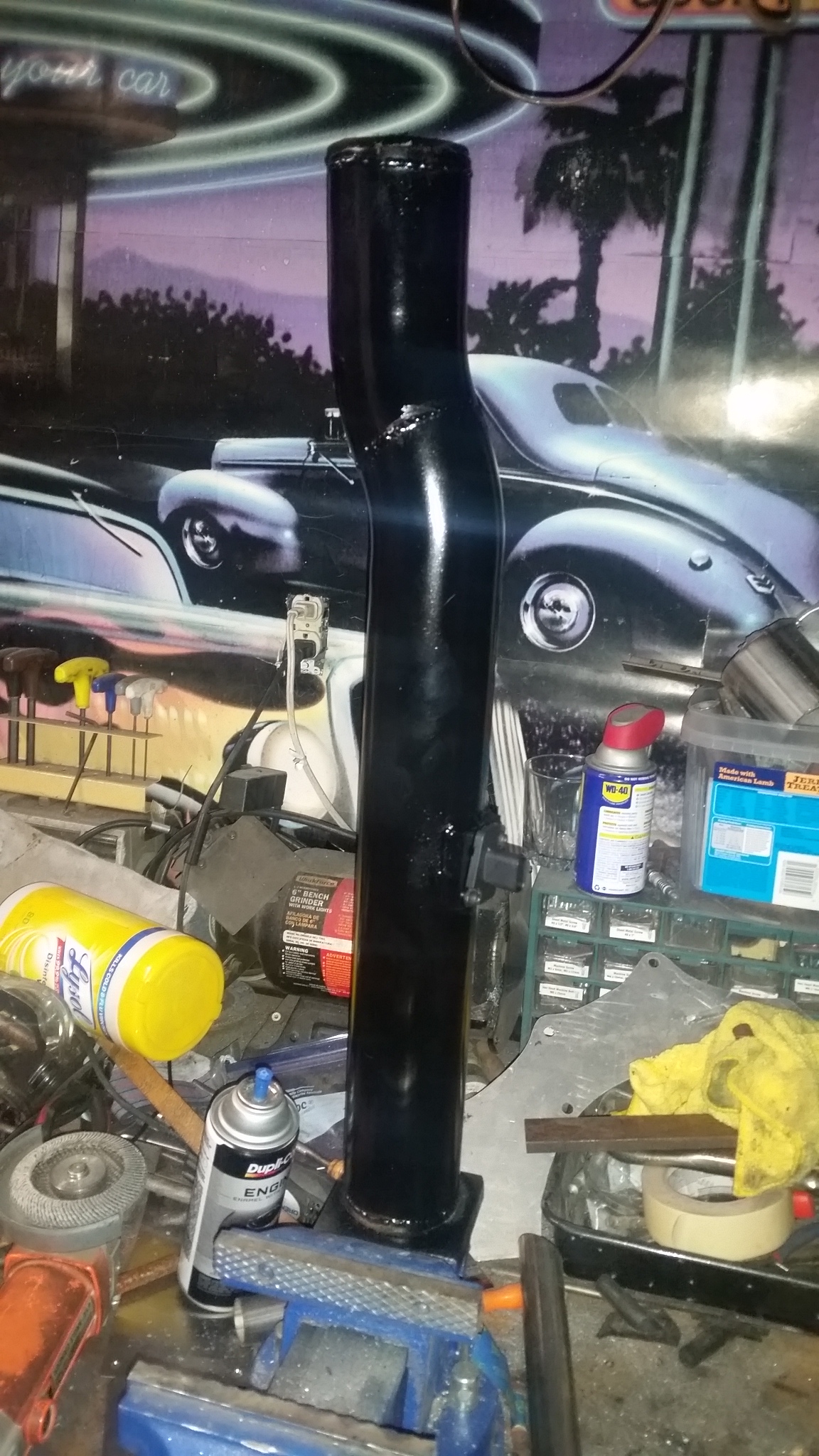 While I was waiting for the below welding to cool I pulled the steering column and tried to figure out why it kept binding up on me... well the bolt that was supplimental holding the piece on the shaft that alides in and out for telescoping was hitting. I ground down the bold (its welded in anyways) and then found that the outside of the knuckle was hitting as well. I ground down the knuckle that wasnt structural and then ground the inside of the below to fit.And guess what, no binding and a smooth steering column. Yay!!! I was worried about that one.