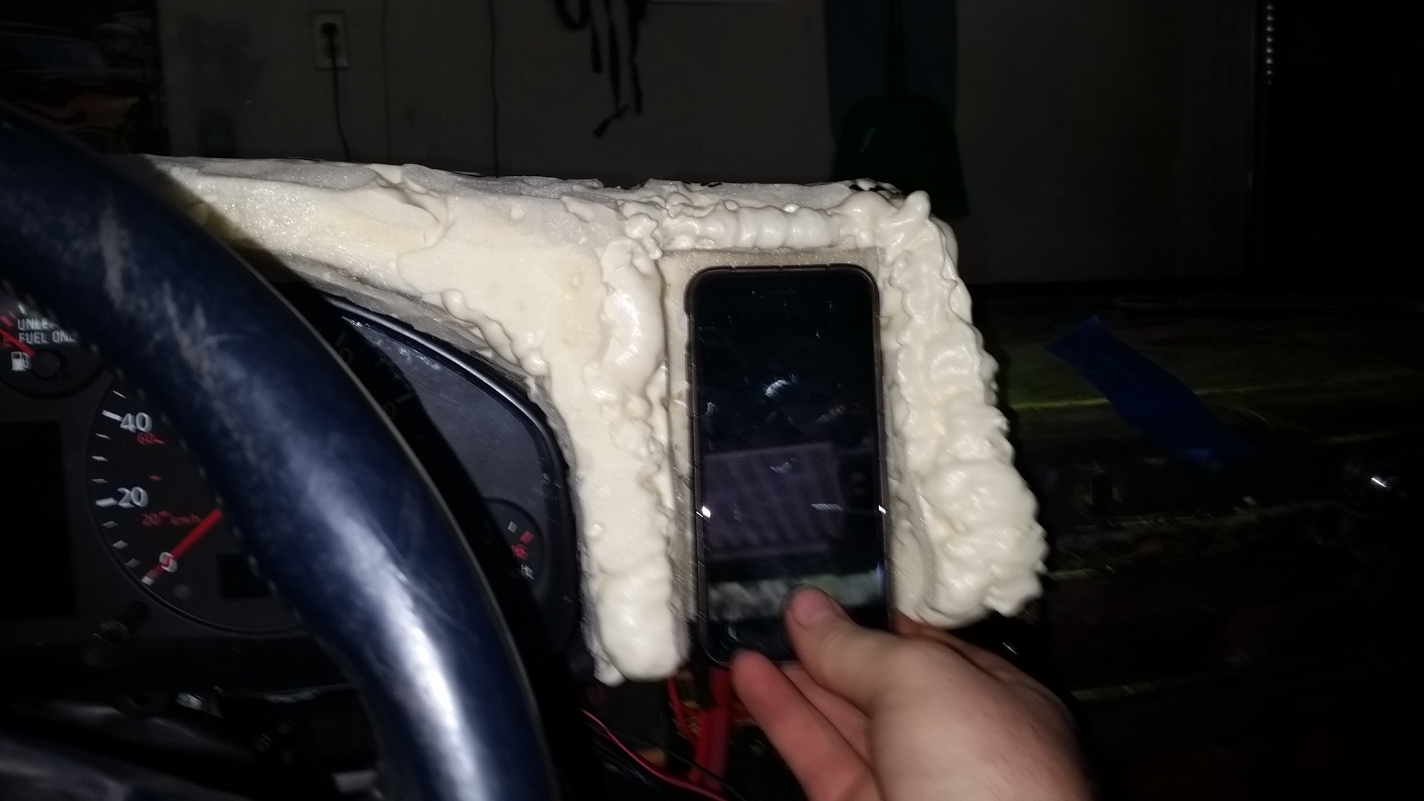 OK, so my tablet Idea was just to far fetched, I cant think of putting a tablet on this dash and it actually looking someone decent due to the size. That being said I am planning on having my phone on the dash to give me the same basic stuff but without the added bulk. That being said here is what were looking at. Am I just ruining the dash with the phone spot being where it is? Should I just have a little magnetic arm to put it on? The covered area gives it sun protection for glare as well as heat and IMHO gives it a more sleek uniformed look. I'll put details on the build later but looking for anyone to comment on the current left side of the dash idea. The right side will slope off the left side to be flat and will be separate for ease of installation. Old pic to show where the phone goes, My work iphone, my regular S5 is bigger . |