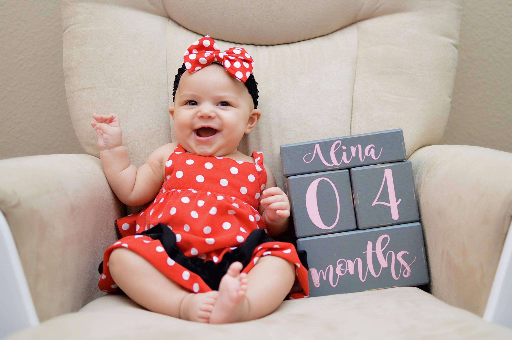 Alina update: Shes doing great!!! Learning so quickly! She loves reading books, dancing to music, running around chasing our dog, and grabbing my glasses off my face.