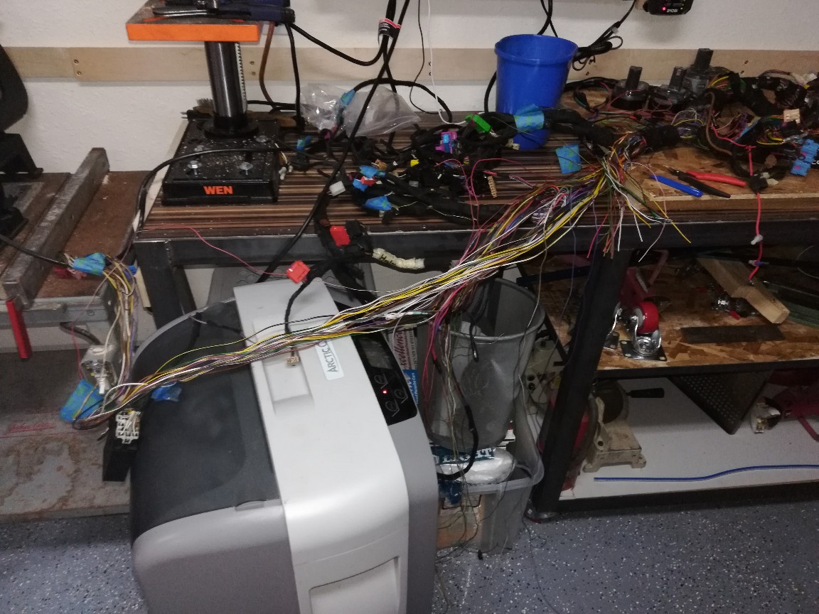 Last night I spent an hour stripping the wires of tape(thread remover works great if your slow to avoid crossed wires) and cutting a couple unused plugs out. Probably a pound of wire removed. I'll weigh it all when done. I've got to do this real slowly to not cut anything critical out. Attached thumbnail(s) |