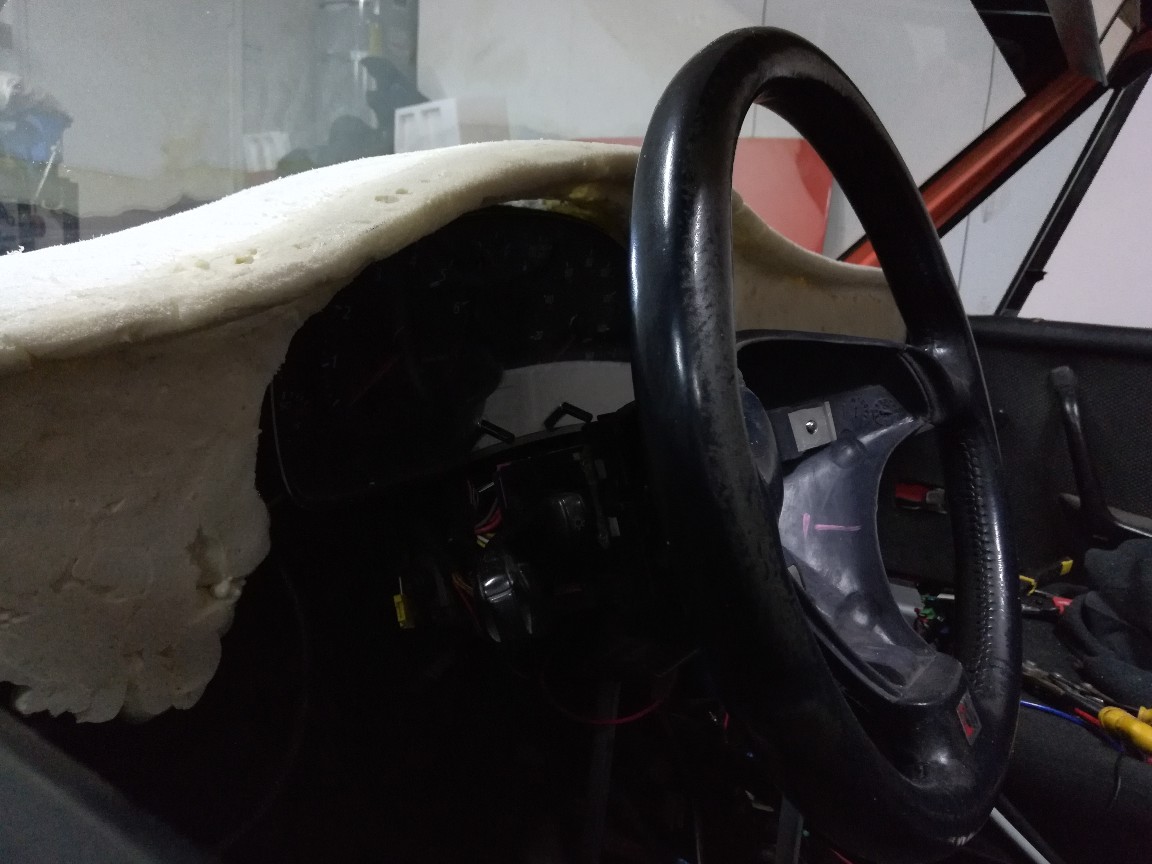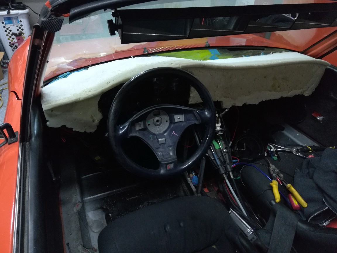 But big hurdle out of the way that will affect the cars drivability by a long shot. Steering column swapped back to a 914. Relocated slightly but it's very smooth now. This meant I needed a new steering wheel and adapter. Quite happy with this one so far. If you look back about 3 years I also tried my hand at making a shifter but couldn't find anyone to turn the wood. Well I still had the 3" block of glued wood but no lathe. I was sitting on the couch early last week and looking at knobs to buy to compliment the steering wheel and I said why don't I give finishing mine up a try? Well I have a new drill press now so I after cutting and grinding it to a really rough shape I put it on the drill, cranked up the speed and got my grinders out and started roughing up the shape with it spinnung. It started to really work with a cut off wheel then I cleaned it up with a flap wheel and finally some sandpaper by hand. Damn proud of it. I'll finish it with Danish oil. All this interior work had been leaving me with deciding what to do with my seats. Another member found some eBay seats that worked for him and I figured I would try something similar. I bought them planning to use then for WCR and this year but when I got all the leather work done I would probably have them redone. I'm surprised by the quality of them... Foam is rock hard, their is a poorly designed sprung in the upper back that pops in and out when you sit down but for $350 delivered for the pair I was really happy with them. They are very tight on the butt but a bottle Jack should fix that like my current seats. I'm confident they will require fab work to the car to replace my old ones. But that's easy enough. For now they will be a play place for Alina. Got to get more important things done first. Meaning I need to drop the trans and replace it. Working late means no power tools so what should be a 2 hr job is closer to 5. More on this next week. I have some more resin drying on the dash upper portion. Hopefully I can use this.... The steering column debacle meant some things are moving around and getting in the way more than anticipated. I'll redo it if needed. No pics. Just scratchy fiberglass... I needed the top done so it will actually hold shape so I can start really mocking things up. |