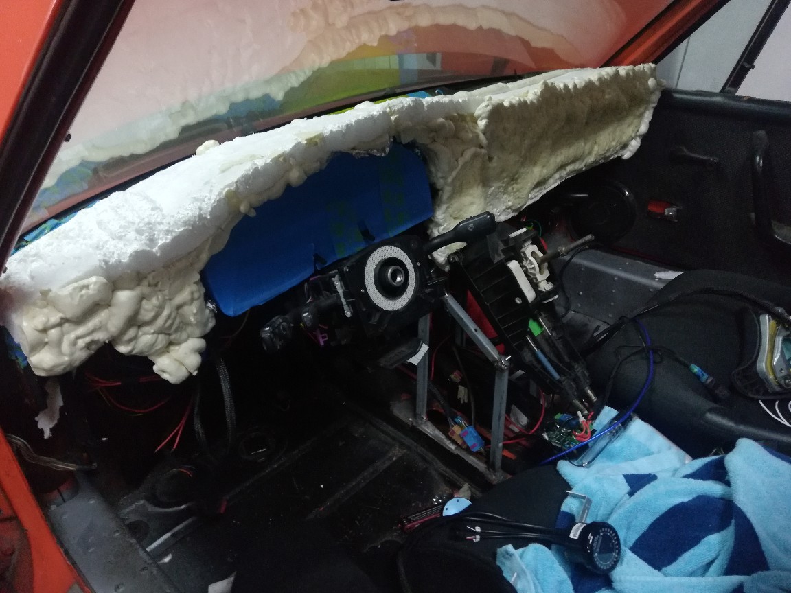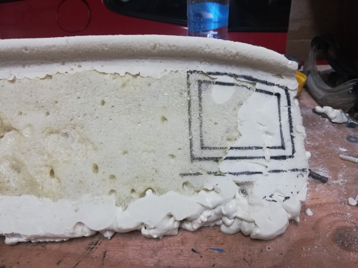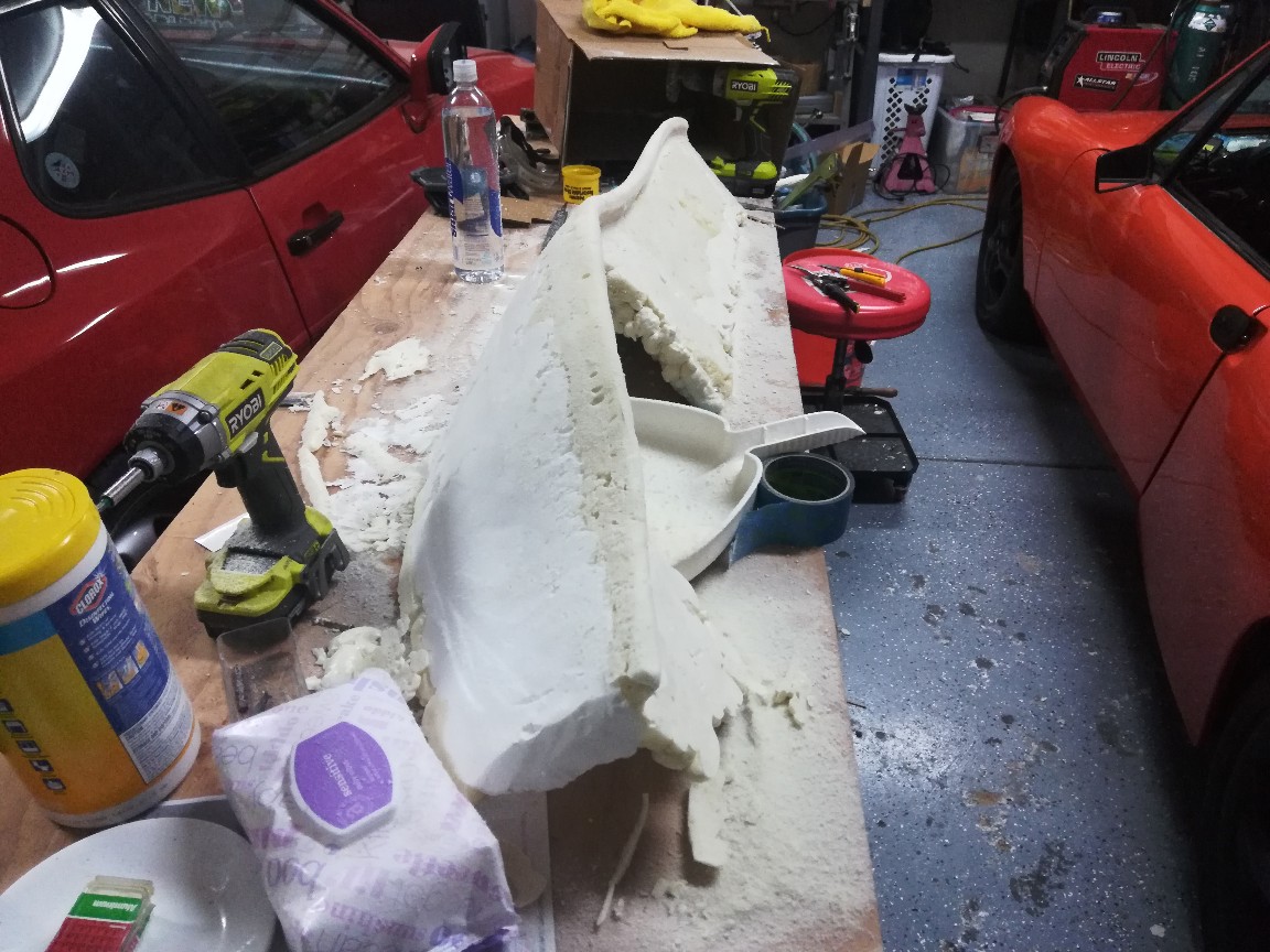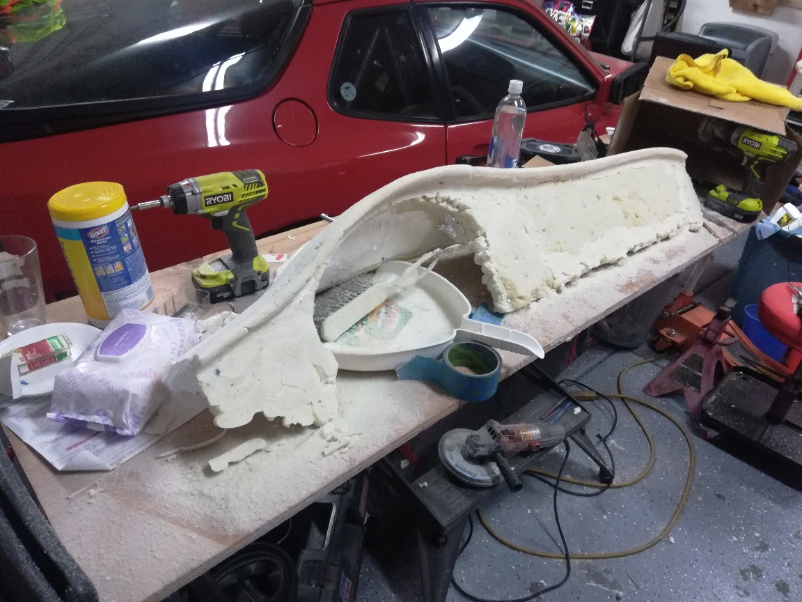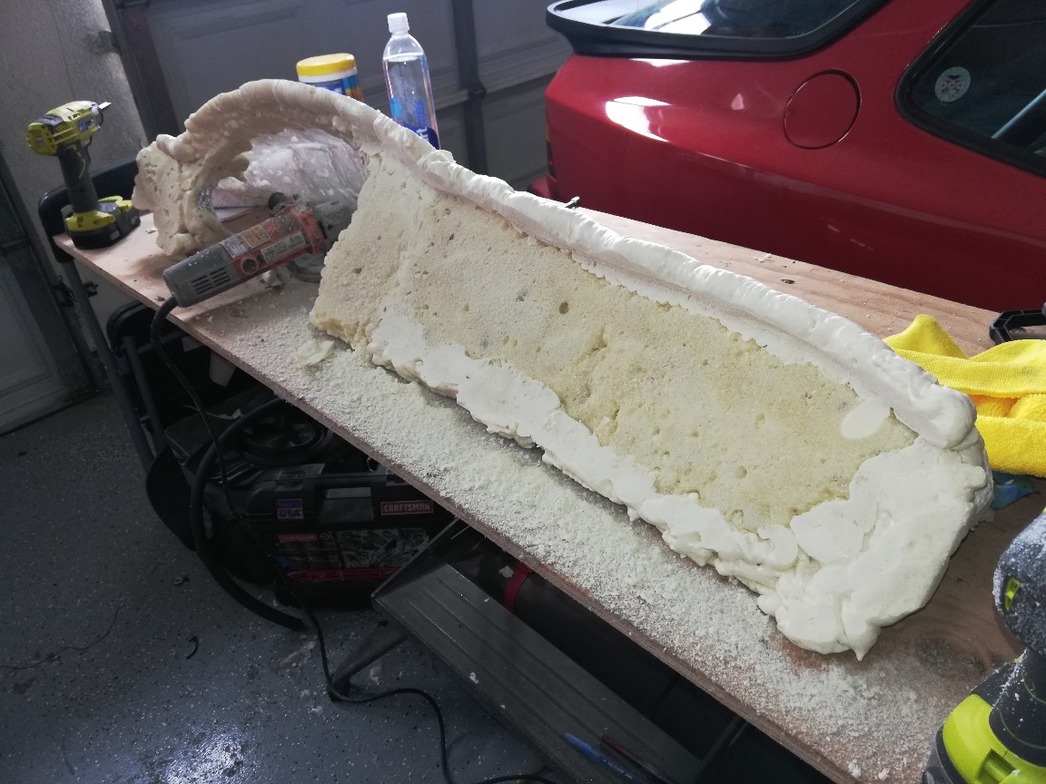 Made with expanding foam, I'll be glassing over it. I have been running into issues with the dash warping so I need to glass the top for strength then I'll finish the front and guage area. Finally I'll work on the bottom as a separate piece. Blue tape line shows rough beltline Attached thumbnail(s) |