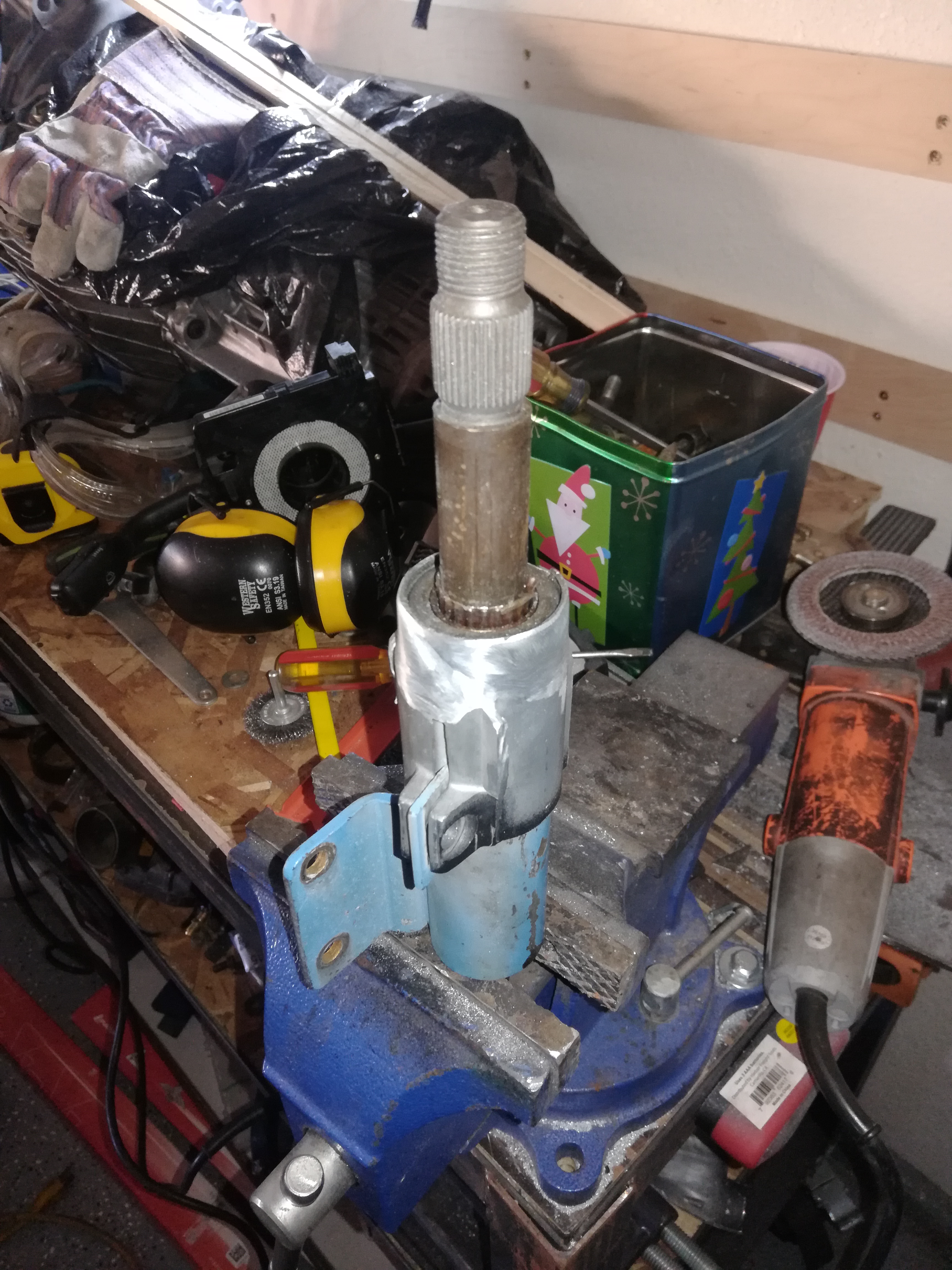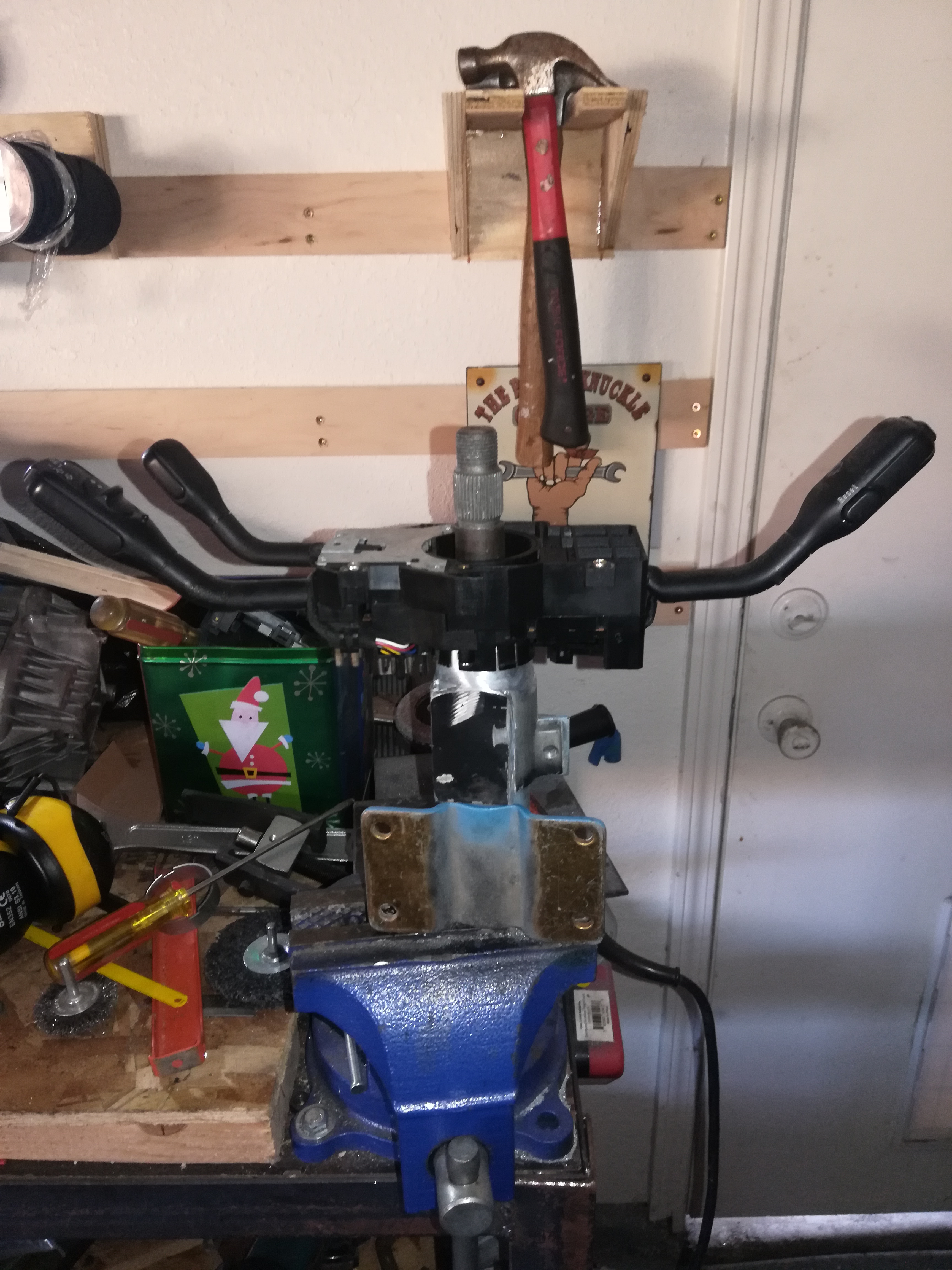 We spent Sunday morning trying to figure out a way to fix my notchy steering. We tried at first to make my double heim joint system to work better but couldnt get it any better than before. One of the reasons for not going with the 914 steering column is the audi signal stalks and all the related electrical components. My dad having the blue parts car he brought down a bunch of stuff for us to consider using instead. This included the 914 steering column. After a bunch of work we decided to give the 914 column a try, cut off the outer housing on the aluminum piece and with a bit of grinding we should be able to put the Audi column electrical bits on the 914 piece. At this point since I moved the 914 mount AND my dash is pretty much formed up I'll mock it in place and weld a column mount to the body We tested the system with the wheels up moving the wheel checking for binding and did not find any. So with a bit more fabrication I'll be able to make this work. This also means no more bulky Audi steering wheel. More details on that when parts come in. Hopefully I can accomplish this and not have to modify my dash too much. June is going to be tough to get the car ready... My list needs to be updated.... |