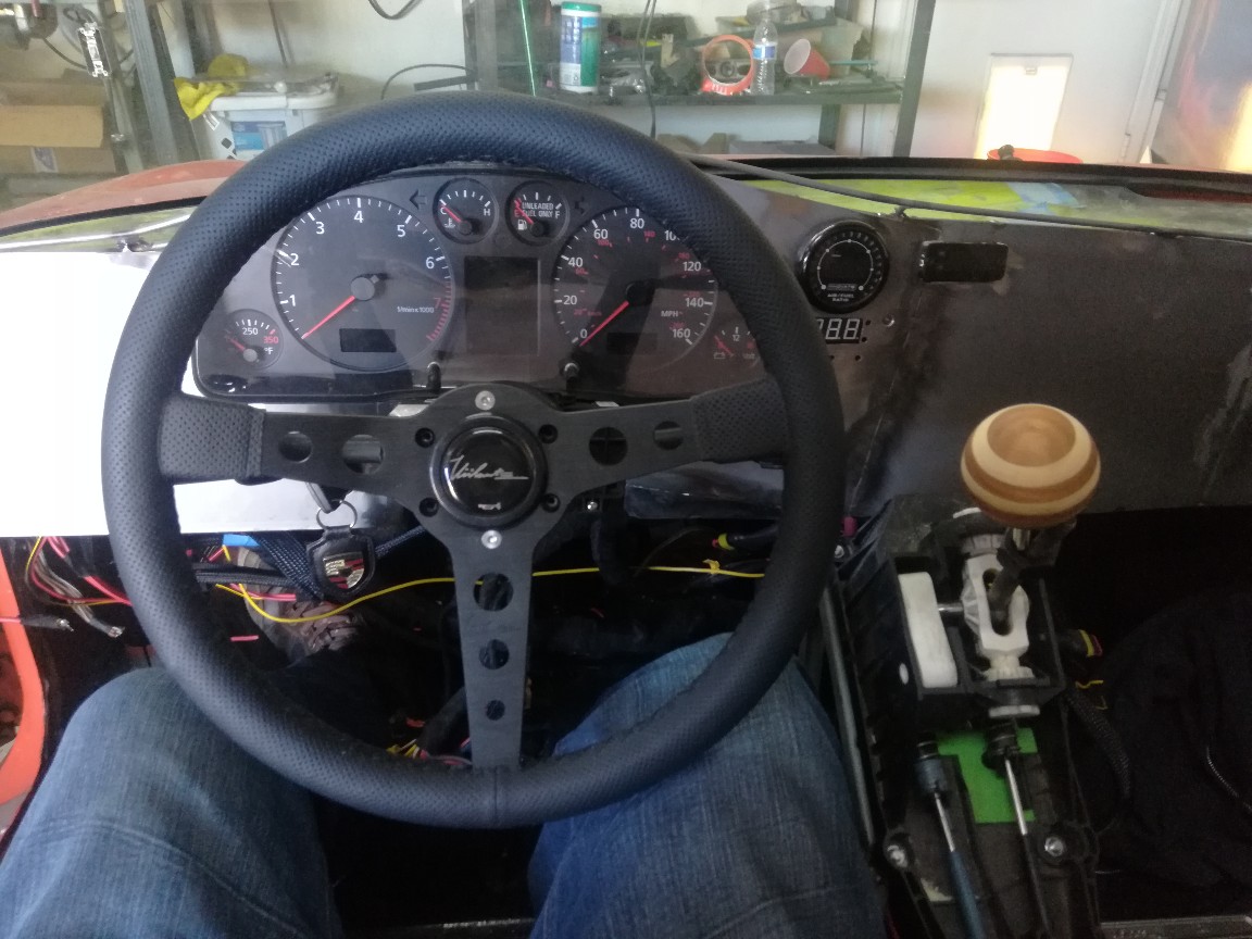 Replaced the trans with the spare I bought.Clutch, flywheel and pressure plate look good. This involved removing the stub axles and swapping them over. Only to find out I didn't grind the hole large enough for the stub axles in the LSD. So I test fit the system and I was only off a strong 1/8. Grinding of the stub axles it was! This portion of the axle is only for a guide. I left a hair on there. Should work well. Flanges are back in normal position. I had to swap shifts cables as I bent the end of one slightly and it wouldn't operate nicely. Fixed it on the bench when I was done swapping it. Adjusted the shift linkage mounts a bit and gave them s coat of silver (couldn't find black...) I test everything by hand and notice the clutch is weak. Seems like some air got in the system somehow. Go to bleed and the reservor cap is missing. Ordered a new one. I test the dash in the car and it seems like it grew some more. The foam stuff just isn't working so I'm scratching this dash. The steering column modifications require it anyways. Sigh I'm debating how to make the new dash. I think I'm going to template it out in steel rod, then fiberglass cloth over it or just use steel. It's a simple design but if I don't fiberglass immediately after trimming the foam it will expand and ruin the design. I'm thinking more and more I'll use some 22ga steel and some rod. I can work with it the easiest. It will add weight, but at this point I have very few choices that I'm comfortable with. Also Danish oil looks decent. Going to keep adding coats and do some fine sanding.. I need this thing running by next week so I can spend some time troubleshooting it. And this dash needs to be done to a level that I at least have the guages mounted. Too tired to load up pics. Here is the knob. Attached thumbnail(s) |