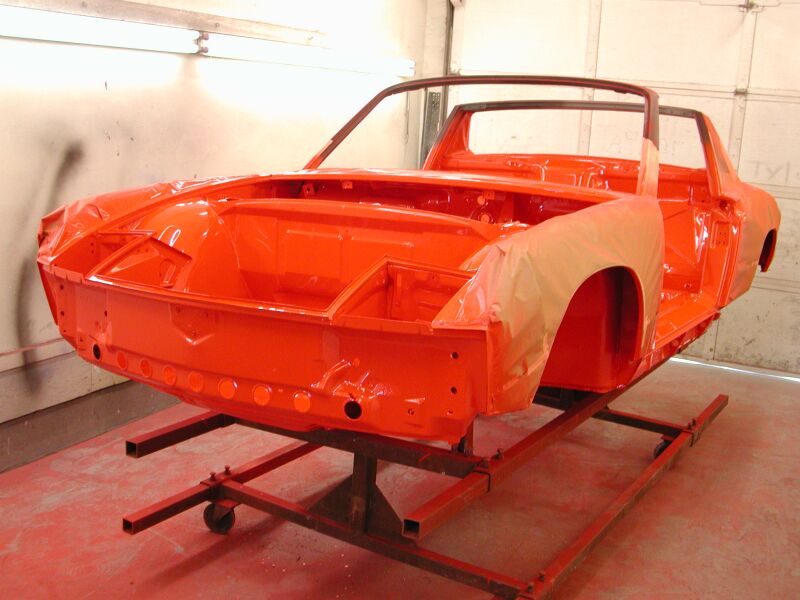 Yes, and no. 1) Non-polish areas have been painted as you said. Exterior panels will be done next with special effort applied to body work and paint polishing. Couldn't wait to show off the tangerine paint though. (IMG:http://www.914world.com/bbs2/html/emoticons/wink.gif) 2) You mean the targa top? It will be factory black. I'm initially going to powder coat or anodize black the roll bar and sail panel trim (I have an extra set), as well as the aluminum seal channels on the A and B pillars. Basically any stainless or aluminum that is against a large field of black anywhere on the canopy. Make sense? Yo, local guys! Thanks! We'll have an unloading party when I get it home boys. |
