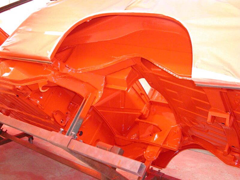 BTW, I assume this was the step of spraying the interior and underneath and the outside body will be painted separately, along with the doors and hoods? (I noticed the masked off areas...). Are you going to paint the top or leave it the factory black? Congrats for doing the restoration the right way. Hope your wife finds another job soon. |
