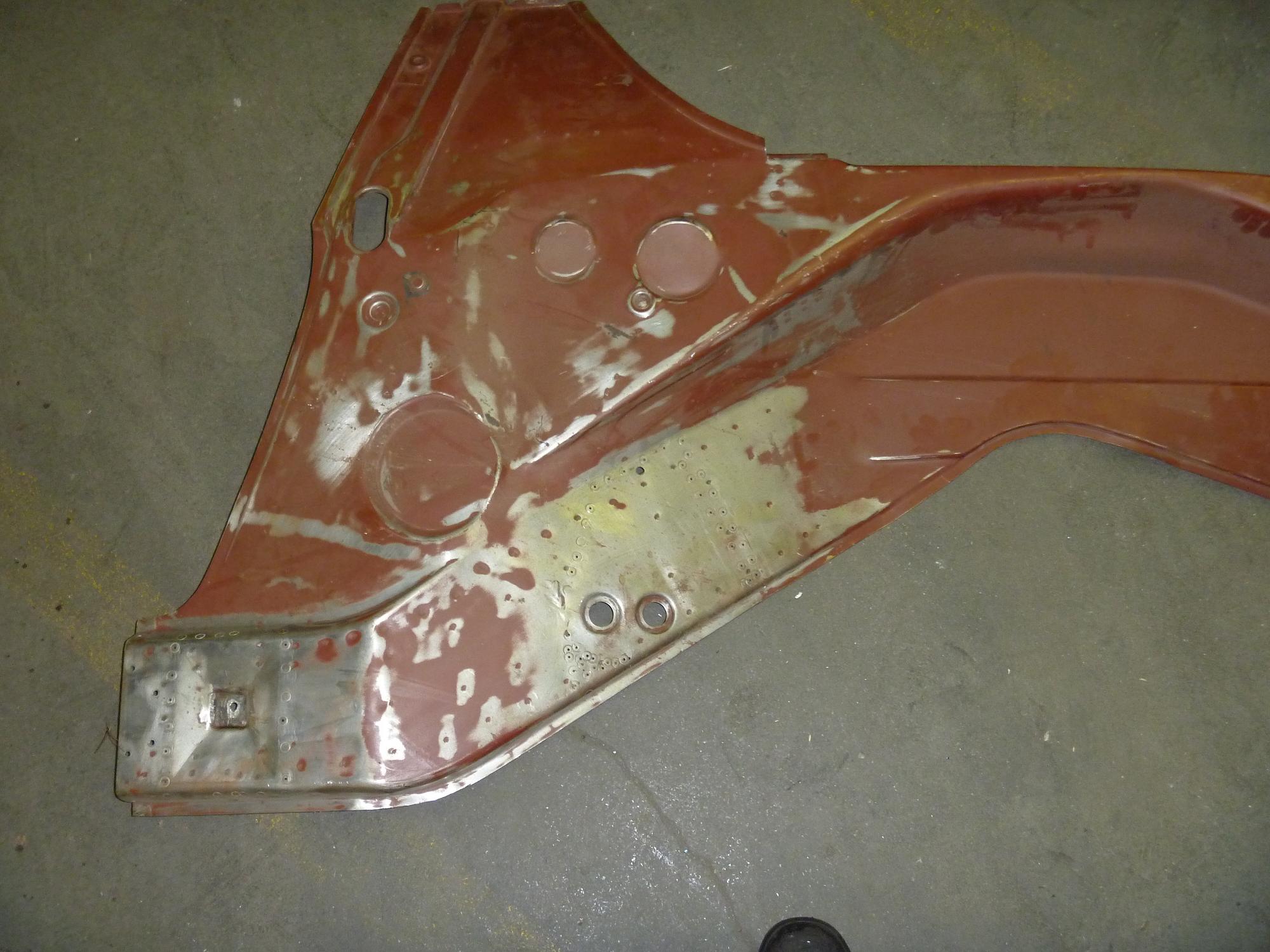 Thanks for the reply Pete. The reason I will probably separate the two pieces is that my outer piece appears to be in decent shape, while the inner piece has rust issues in the bottom of it and around the jack post. I'm trying to keep as much of the original metal as possible, mostly because I want to reduce the chance that I throw something out of alignment or twist the frame. I'm doing this without a jig, and that's my biggest concern. It would be easier and less work if I just cut out entire panels and replaced them with new ones, but I'm not sure I can keep the car straight if I did that. So I'm not planning to replace my part with the replacement part entirely, just cut away until I get good metal, and then cuts pieces out of the replacement part as needed. I'm happy to get both pieces though, since there probably are some parts of the outer that I will replace, like around the jack post. Per my exchange with Lucy, my understanding is the double piece is what is on its way to me. I suppose most who buy that part are replacing the entire original piece, or are at least replacing both layers where they replace it, so it makes sense you've spot welded it. I'm just trying too limit cutting out that much, at least at one time. We'll see, I may end up using more than I think. --Steve (IMG:style_emoticons/default/blink.gif) I'm a bit confused. you don't want to cut out the outer for fear of having the chassis twist so how to you propose to get to the inner panel ?? (IMG:style_emoticons/default/confused24.gif) AM I missing something ? FWIW if the innner panel is rusty and the outer is not....you just haven't found the rust on the outer. Water tends to gte inbetween the two panels and rust the outer from the inside out. My bet is once you seperate the two to do things the way you plan, you will find you need the outer piece as well If you are going at this from inside the engine bay you DEFINITELY do not want to go any further until you brace the car. Not inly at the doors, but you need to support the whoole rear ( trunk ) section of the car. Once all of the hell hole metal is removed, the whole rear 1/3 of the car is just floating and it WILL move unless you have it firmly supported and tied into the cabin. Gauranteed You're confused because what I wrote is confusing... It's true, I expect I'd have difficulty getting to the inside panel without removing the outside panel. What I meant is that, since I am hoping to not replace too much, I will cut away the rusted portion of the inside panel, and also cut away the outside panel to access it. In fact, I'll cut away an inch or so more of the outside panel so I can weld the inside first, clean it, then weld the outside over it. I expect I'll have to separate the spot-welded RD pieces to do that, since I'm not simply welding in a big length of double-walled replacement piece (again, hopefully (IMG:style_emoticons/default/hands.gif)). Your comment about the outer almost certainly being rusted as well is preparing me for worse. I haven't gained access to everything yet to see how bad the rust is, since I want to weld up the areas I've already removed before removing any more material. I've so far removed the interior half of the bottom of the long from forward of the jackpost to the start of the suspension console. The walls of the long and the outside of the bottom of the long I have not yet touched, other than at the jackpost. I appreciate the warnings about supporting the car. I have it supported front and back (it's on a rotisserie), and supported by leveling jacks in two places under the passenger long. The car's upside down for this stage of the work. I also have Tangerine Racing supports in place, two on each door opening, and check those measurements. I think that should be enough support, at least if I don't have to cut too much away at any one time (and I certainly wont be cutting all the way through the long at any point). |