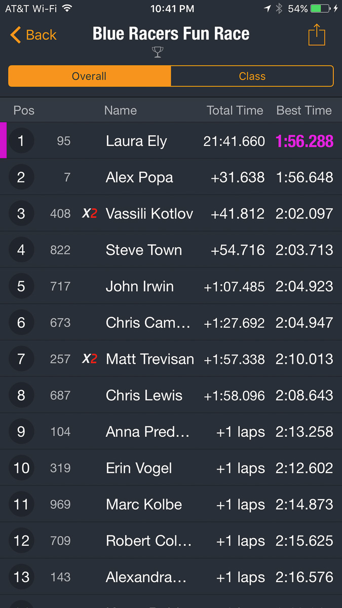 18 total entrants - by the way, P1 (Cayman GT4 Clubsport) was a female. Smokin fast!!!