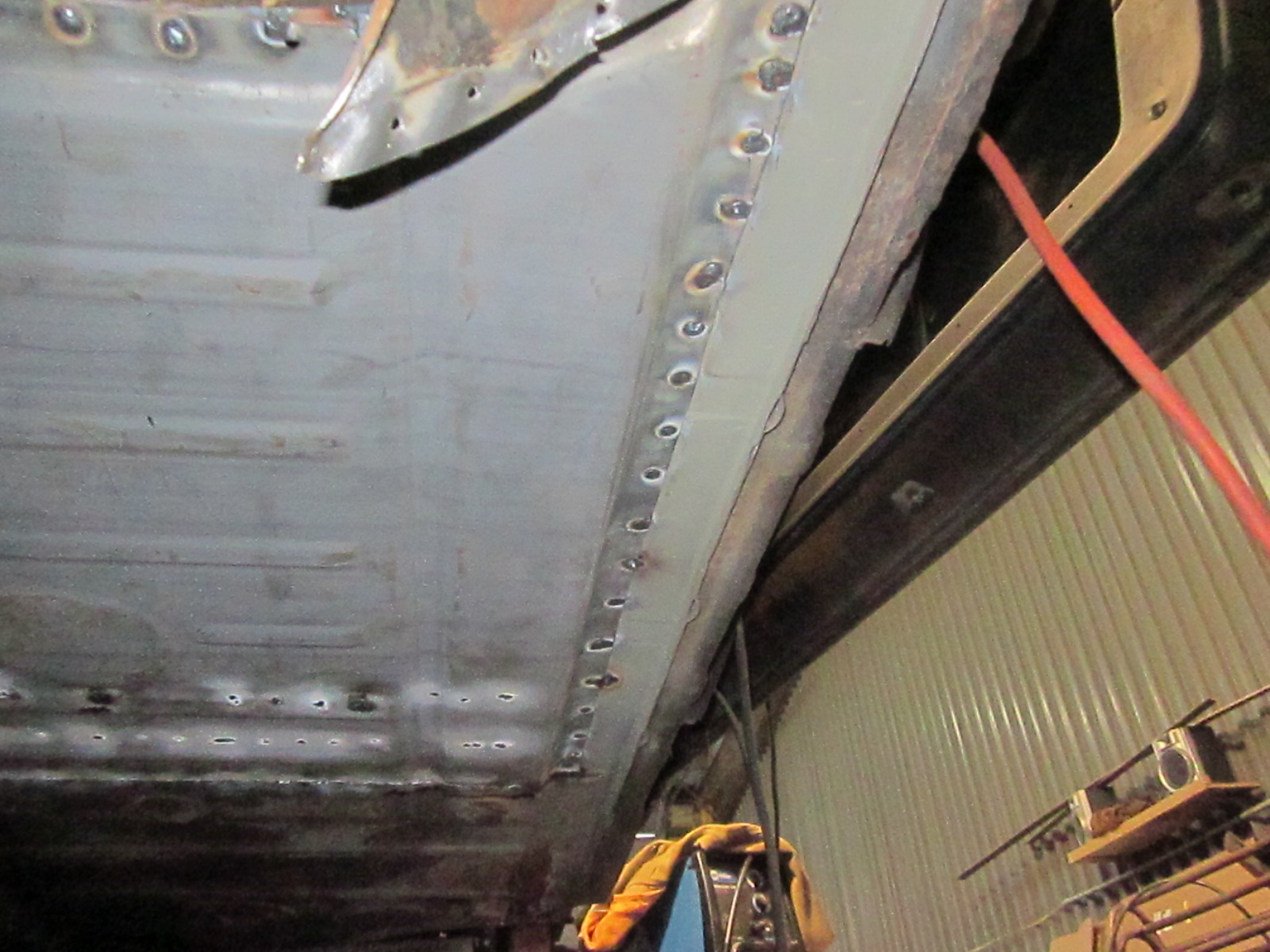 crevasse's (IMG:style_emoticons/default/WTF.gif) got wire brushed, Ospho'ed, and brushed with rustoleum. Floor pan got holes punched, weld areas got sanded and etched primed and the center section got brushed with rustoleum. The rustoleum really isn't necessary, but I had it out and the brush was still wet so why not (IMG:style_emoticons/default/confused24.gif) Still have a little more welding to do, (IMG:style_emoticons/default/welder.gif) but the biggest part is done (IMG:style_emoticons/default/unsure.gif)