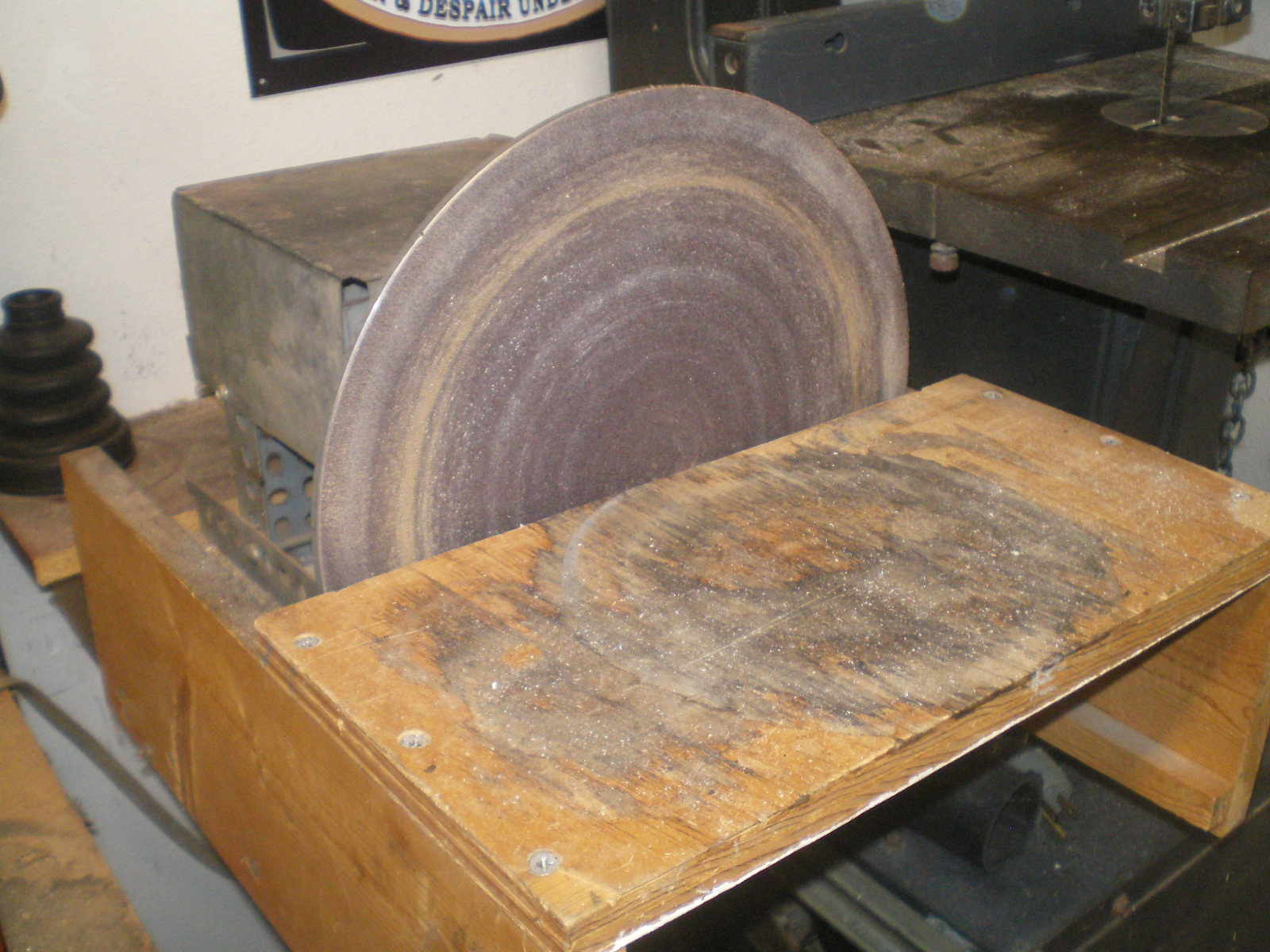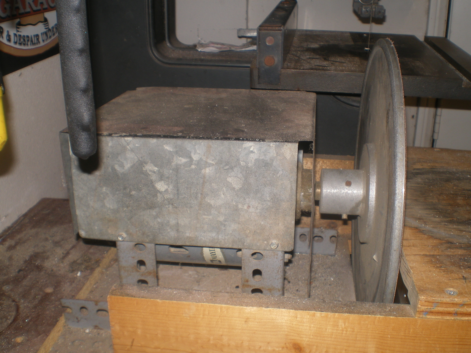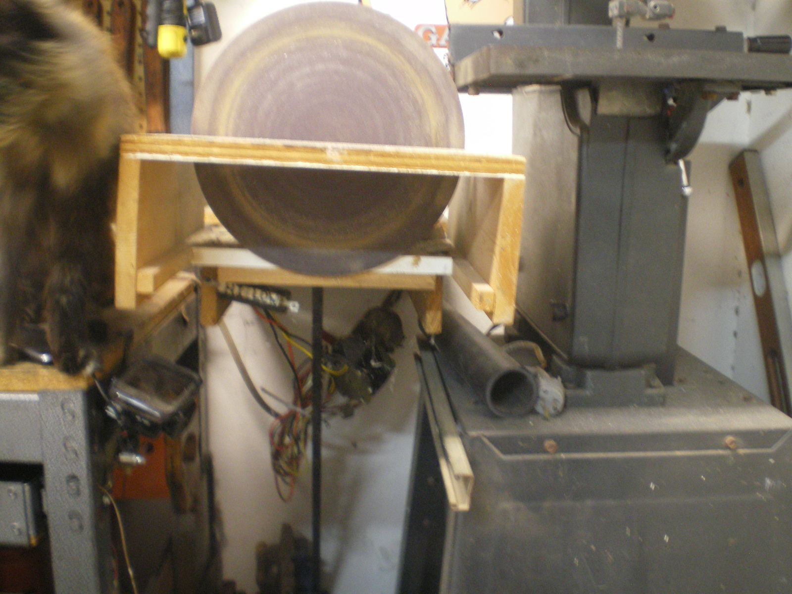 Washing machine motors can be used to make a nice 12" sander for< $50 in parts. (IMG:style_emoticons/default/rolleyes.gif) That would be interesting to see...any picts? Dave Sure. Excuse the brief hijack, Jim. It even has 2 speeds as seen in one pic. (IMG:style_emoticons/default/lol-2.gif) I burned up the first motor when I tried to use just 3 wires so the second time I keep the complete WM harness. That is the gob of wires beneath it. IIRC, I bought the disc from some company that makes large sanders. Just wrote them to say I had gouged mine and wanted a replacement. Just be sure the motor shaft size matches the disc. Hijack over. (IMG:style_emoticons/default/beerchug.gif) |