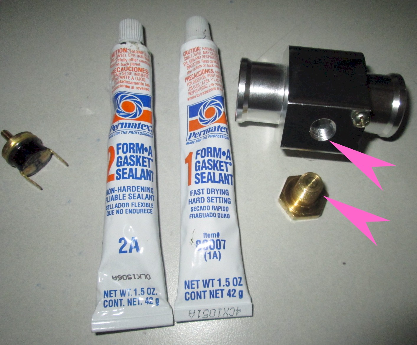thursday evening was in the 60s and my car ran between 195 and 205 degrees on hwy and fans for the most part did not come on. today was probably around 50 degrees and my fans never came on except when i stopped for gas with engine running and engine ran about 190+- most of the time. i'm thinking that when the summer rolls aroubnd, i will need to seal up any gaps in my radiator ducting and may need to go to a 180 degree thermo switch? right now i have a 190 thermostat in engine and a 190 thermo switch on radiator hose. i did end up using pipe tape to make the seal in the npt thread between thermo switch and the aluminum radiator hose housing. the tape though may have contributed to keeping the switch from going in deep and keeping it more away from the main water flow then had i not used it. though i did not think the switch would be deep enough to be in the flow no matter what i did. best of all, i do not need to manually plug my fans into power every time i drive. Attached thumbnail(s) Attached image(s)