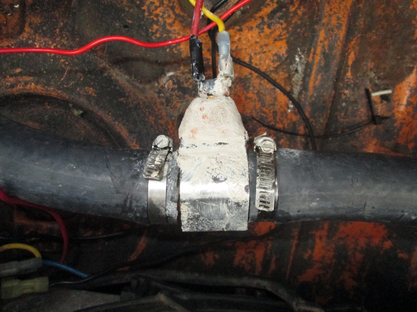 switch is in but twice when i ran the engine the fans did not come on before engine reached 230 degrees. turned out the 2 part thermo switch was coming unthreaded thus losing thermo conductivity, we think. my buddy them put copper gasket between the two sections to hold them together and improve thermo conductivity. my buddy also added some DUM DUM he calls it to help additionally. thursday evening was in the 60s and my car ran between 195 and 205 degrees on hwy and fans for the most part did not come on. today was probably around 50 degrees and my fans never came on except when i stopped for gas with engine running and engine ran about 190+- most of the time. i'm thinking that when the summer rolls aroubnd, i will need to seal up any gaps in my radiator ducting and may need to go to a 180 degree thermo switch? right now i have a 190 thermostat in engine and a 190 thermo switch on radiator hose. i did end up using pipe tape to make the seal in the npt thread between thermo switch and the aluminum radiator hose housing. the tape though may have contributed to keeping the switch from going in deep and keeping it more away from the main water flow then had i not used it. though i did not think the switch would be deep enough to be in the flow no matter what i did. Are those HF hose clamps? If so, you are the first person to ever get one of those to tighten up without stripping out. (IMG:style_emoticons/default/lol-2.gif) |