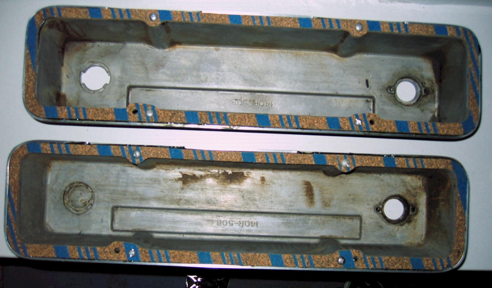 leaky stamped steel valve covers. so i got me a vintage set of aluminum valve covers that arrived today. will install on next nice day, raining like crazy today. cleaned them up and used form a gasket 2A on the seal surface between covers and gasket, setting up now. gonna try no sealant between gasket and engine.