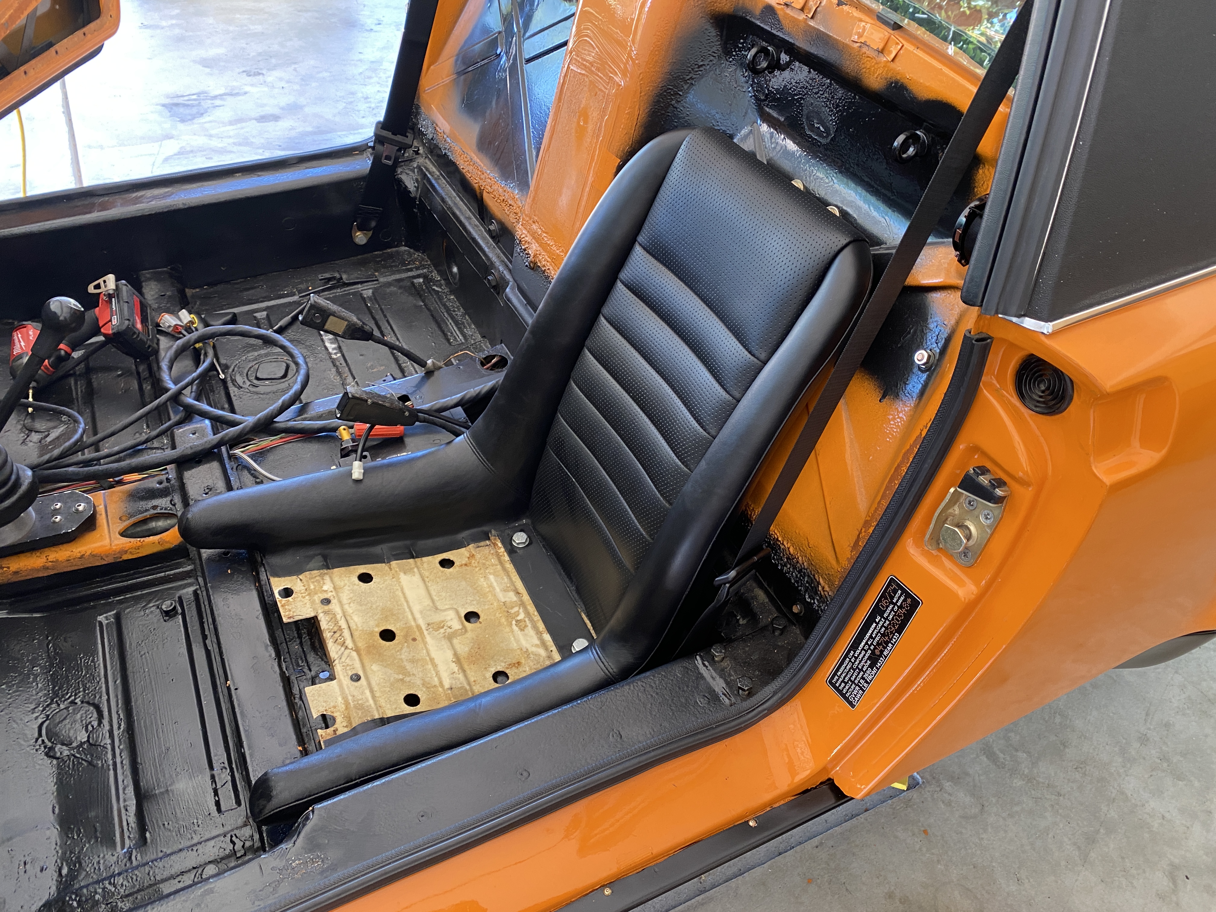 914. floor has been lowered about 3/4 of an inch and seat is bolted to the floor. this works really well for tall people.