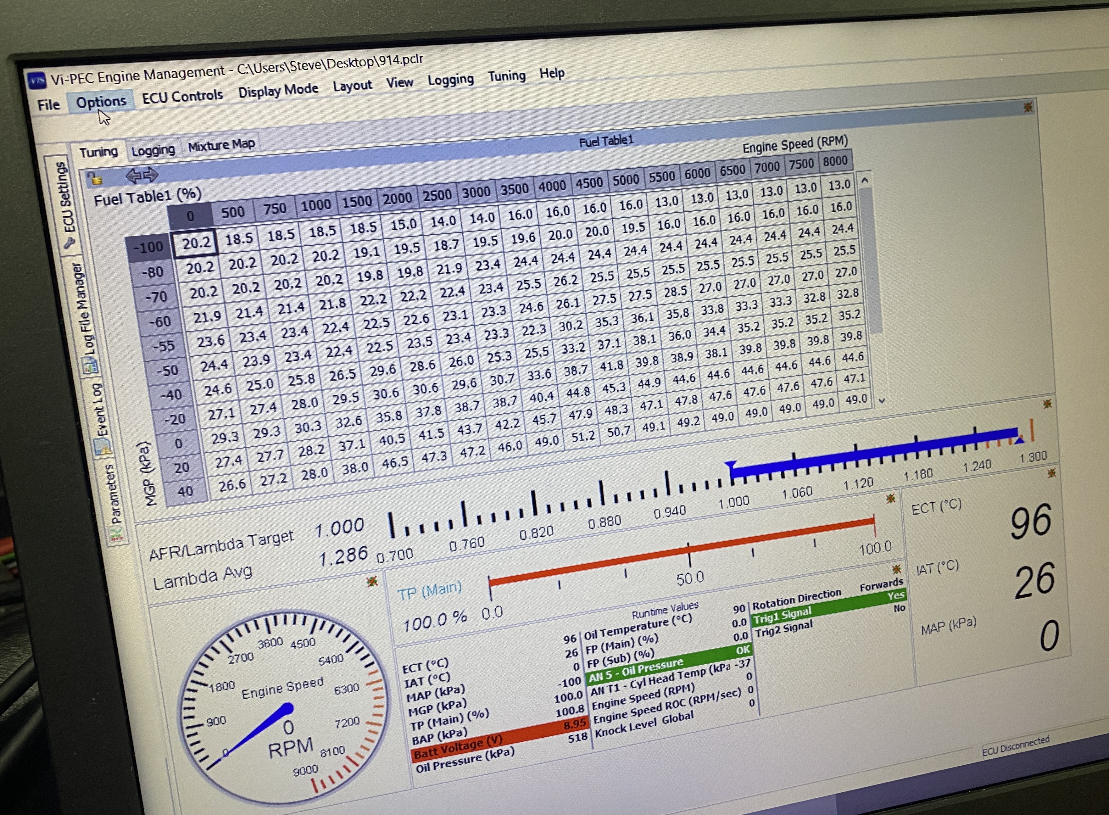 Still at it... Got some of the engine wired up and some sensors working. The engine has oil pressure and the computer sees it too!