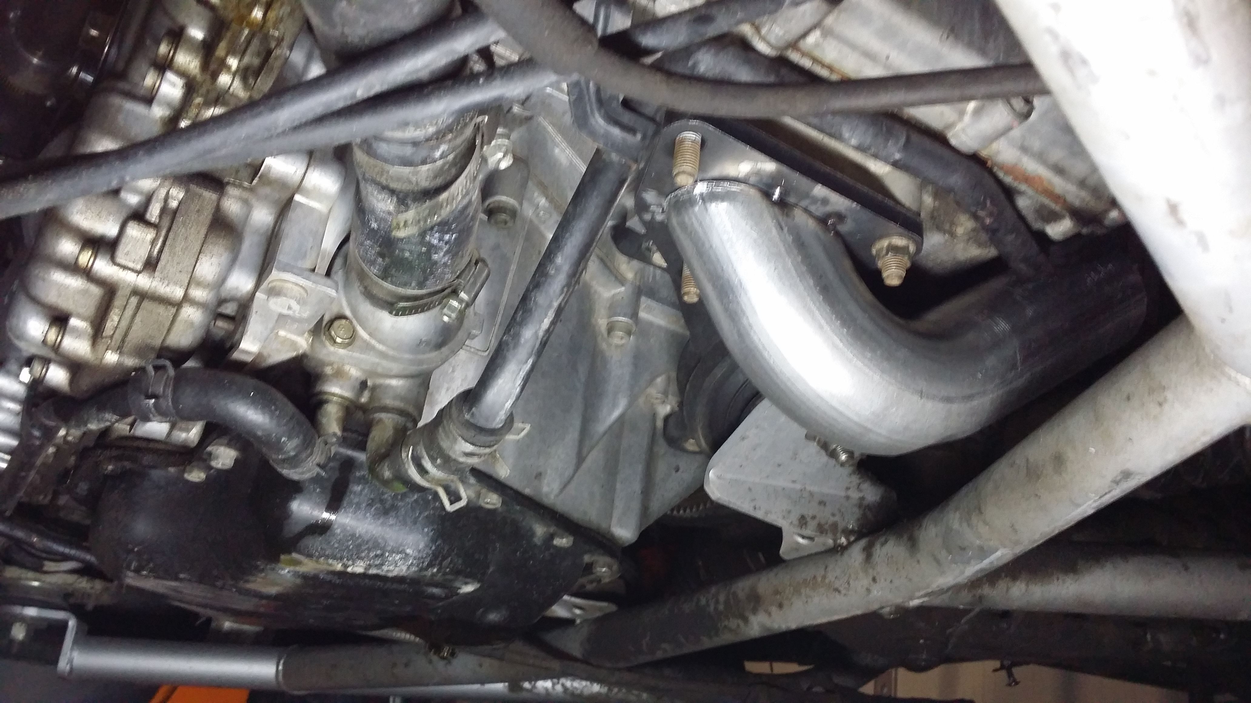 They look nice, I like them, would love to see it bolted to the engine and how its going the thread through the cold water cradle. Still haven't figured out why Subaru went back to a common port? But heck 250 HP it must be working for them. I'll see if I can get that shot. I think the only way to not have it drop below the cradle. Is to bring the headers to the front (towards firewall) Then join them or keep them separate but loop them back Down the sides above the cradle. Doable with a pipe bender. Another reason I was thinking of either doing a different mount that came from the firewall. Or bringing my exhaust forward then wrapping it around back. I hate that it drops below my cradle I looked at that, but with the water line return and shift cables where they ate at that looks like a big headache. As built these come back up above the cradle and should be able to head above the axles from there. The whole thing should work or pretty smoothly, but I'm wondering how much power I would lose by having such a sharp angle right at the exit. |