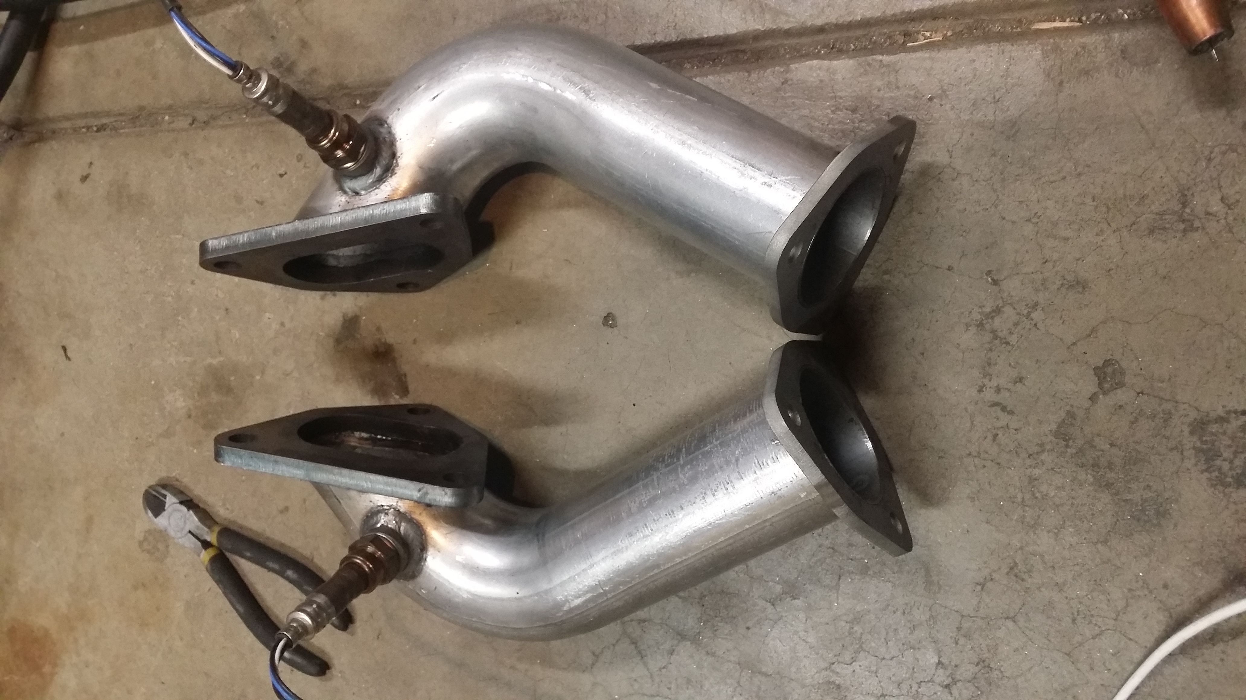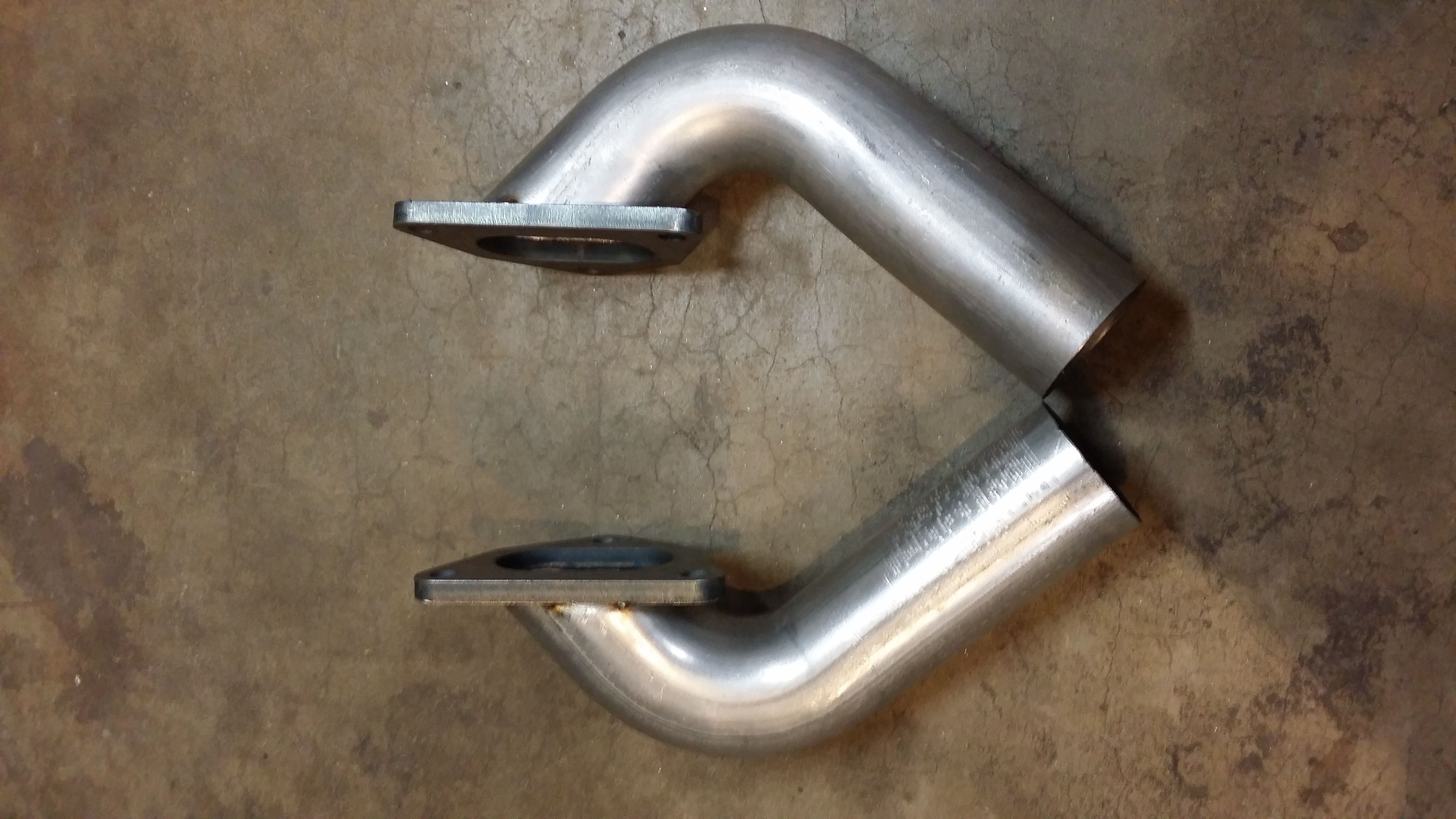 Im working on a set of headers that gives me more ground clearance and also is a bit freer flowing. With 2.5" pipes this is the best I could do to clear Ian's sub frame. I have some 2" pipe bends that might be able to exit a bit straighter, but are much smaller diameter.