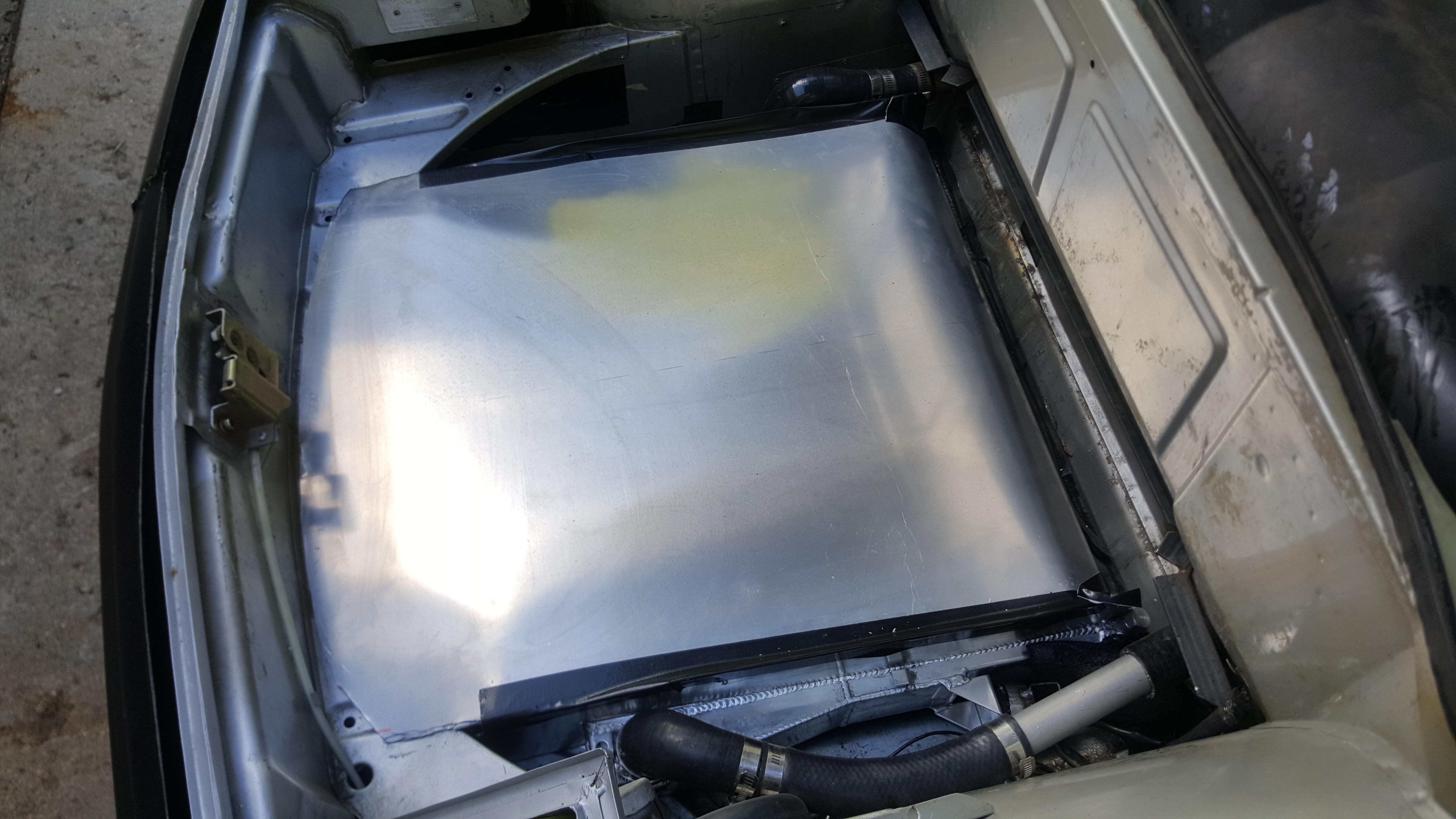 I finished putting in some aluminum shrouding on my radiator. I had tried previously to seal the radiator on the outlet side, but the shrouding over the intake side has had a huge effect on water temperatures. Coupled with the new Mishimotor radiator (z3 performance model) my fans essentially stay off unless I'm at a light. I have yet to test it under hard load in the mountains though. The best part is that I still have a front trunk. Even built a nice carpeted trunk board today! |